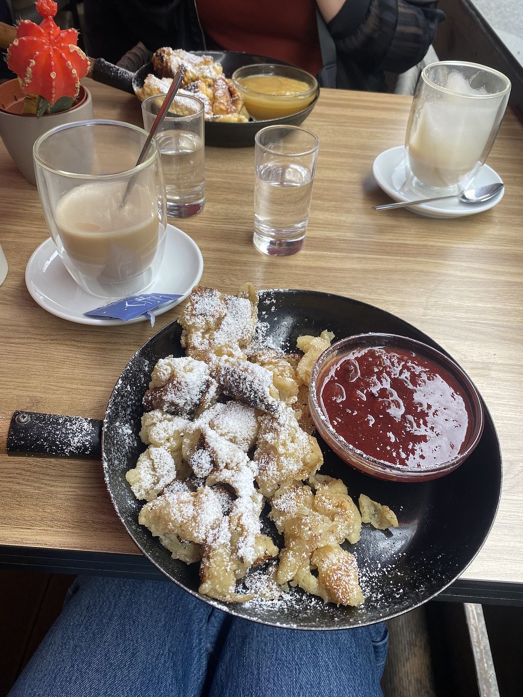 It was my first time trying the kaiserschmarrn, so I can't rate them properly, but for my liking, they had a strong eggy flavor that, for me (a vegan), was not very pleasant. I also don't know if they were supposed to taste like that or with my broken English the waiter misunderstood me and served me the non vegan ones..