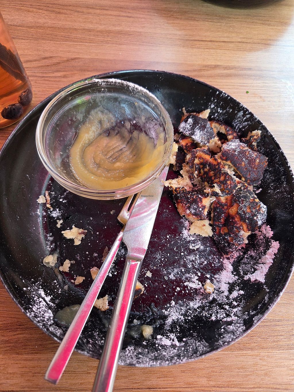 Heel leuk dat er een vegan optie voor Kaiserschmarrn is, alleen viel de uitvoering tegen. Allereerst lang moeten wachten: bijna een uur. Het werd netjes opgediend, maar de laag poedersuiker bleek aangebrande stukken te bedekken. Veel zwart verkoolde stukken weg moeten snijden. Zonder deze stukken was het wel smaakvol. Het personeel was verder weinig zichtbaar, waardoor ook het afrekenen erg lang duurde. Al met al vond ik het geen waar voor mijn geld.