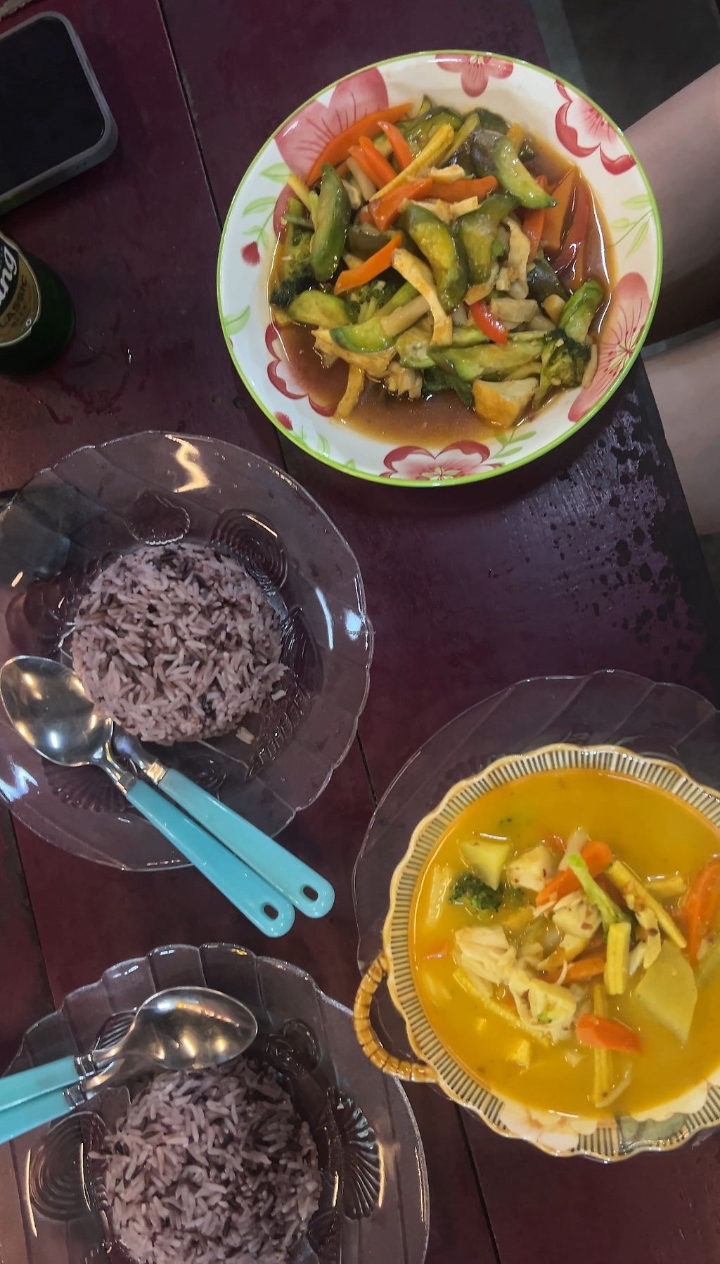 The stall sells thai food which is really affordable and you get a huge portion. Also does juices, some contain yogurt but i’m not sure if it’s vegan or not (ask if it’s vegan)