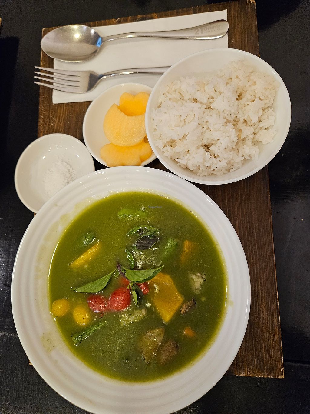 21 Grams is vegetarian with a selection of vegan options, but unfortunately no vegan milks. The place is on the fourth floor of the building (be aware that the elevator attendant will require 40000vnd to use it), if you're able to use stairs it isn't so bad.