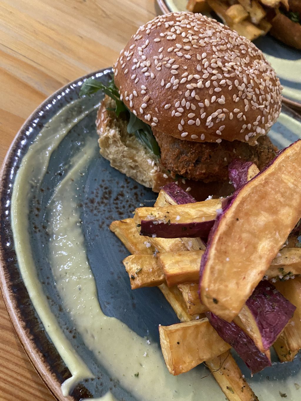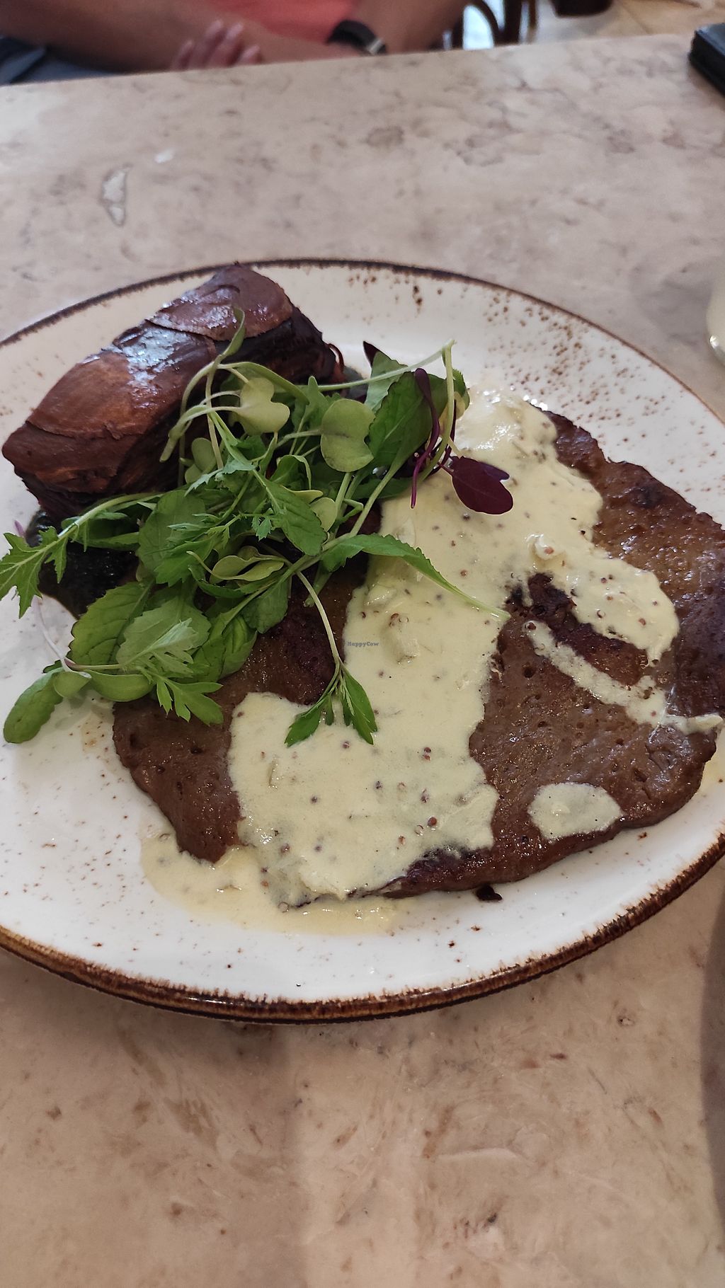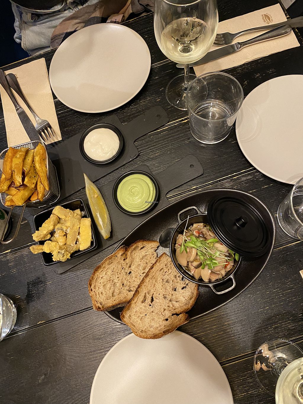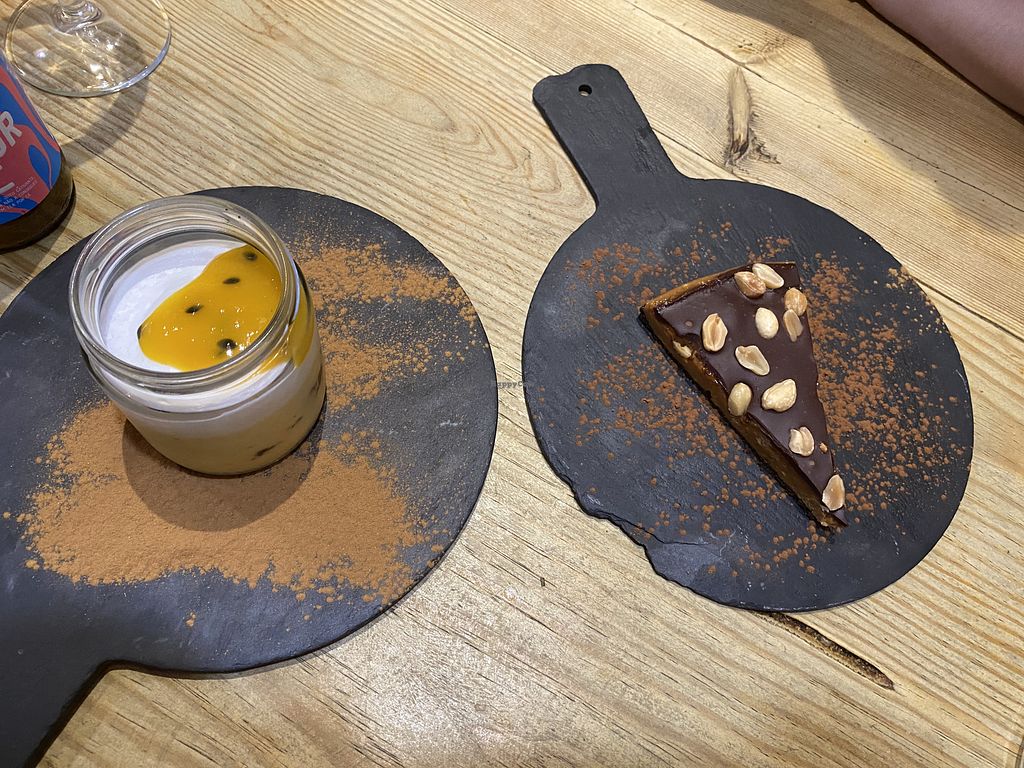 The food was well served and presented on a higher level. I appreciate the imitation of ‘traditional’ looking food. I had seitan stake with mustard sauce and layered sweet potato with spinach sauce. For started I had fried ‘cod fish’ which was really nice. My friend had sweet potato fries with garlic mayo sauce (so good) and the other friend octopus salad as a starter. For the dessert I had chocolate peanut cake and it was super nice!
