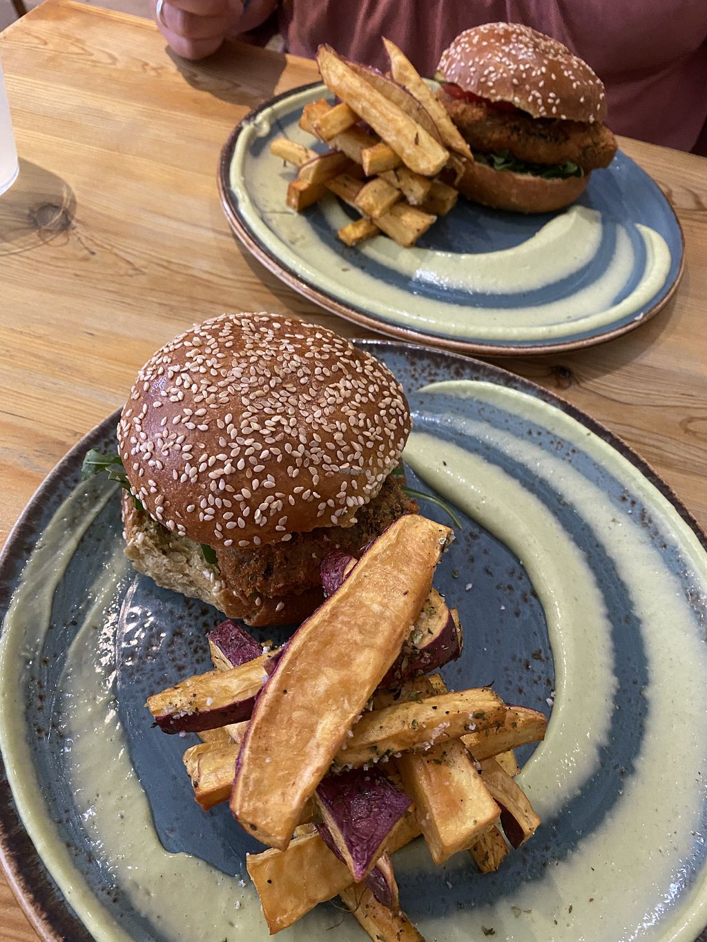 Lisbon has many great all-vegan spots, but this one feels just a little nicer. The interior is well thought out and beautifully designed. The food is innovative and comforting all at once. Our favorite item was the cheese board. It consisted of such a fun variety of flavors and textures. The "brie" was outstanding! The meals were good, but I'd say the appetizers stole the show. I ate the traditional Portuguese dish and my husband had the burger.
