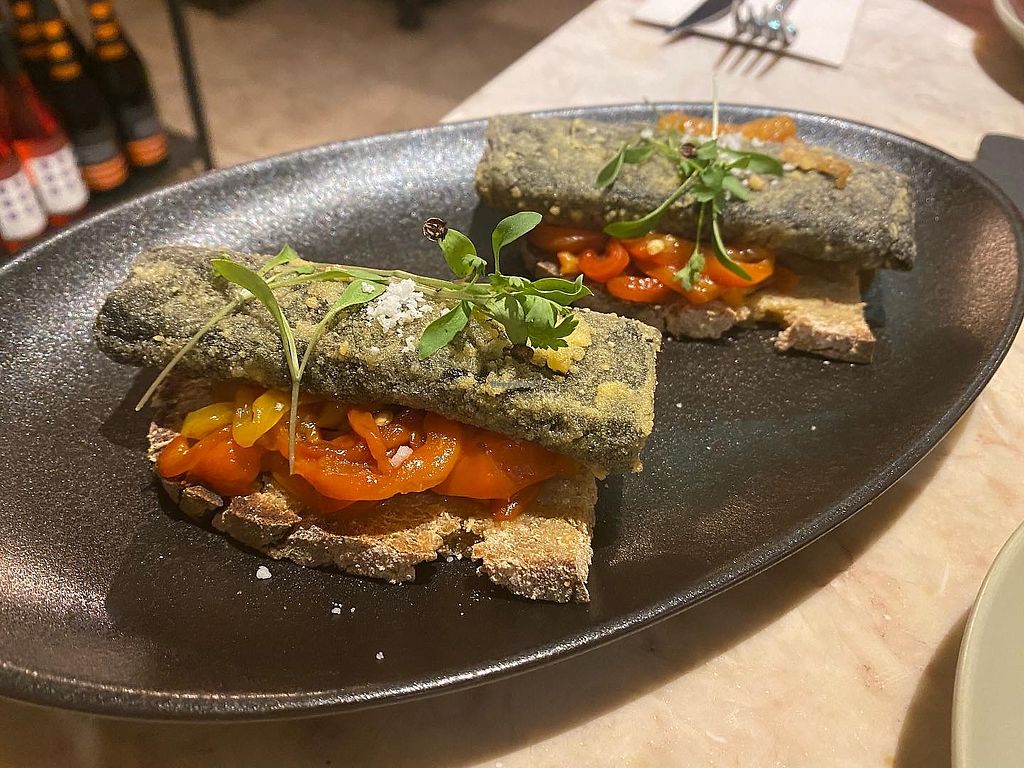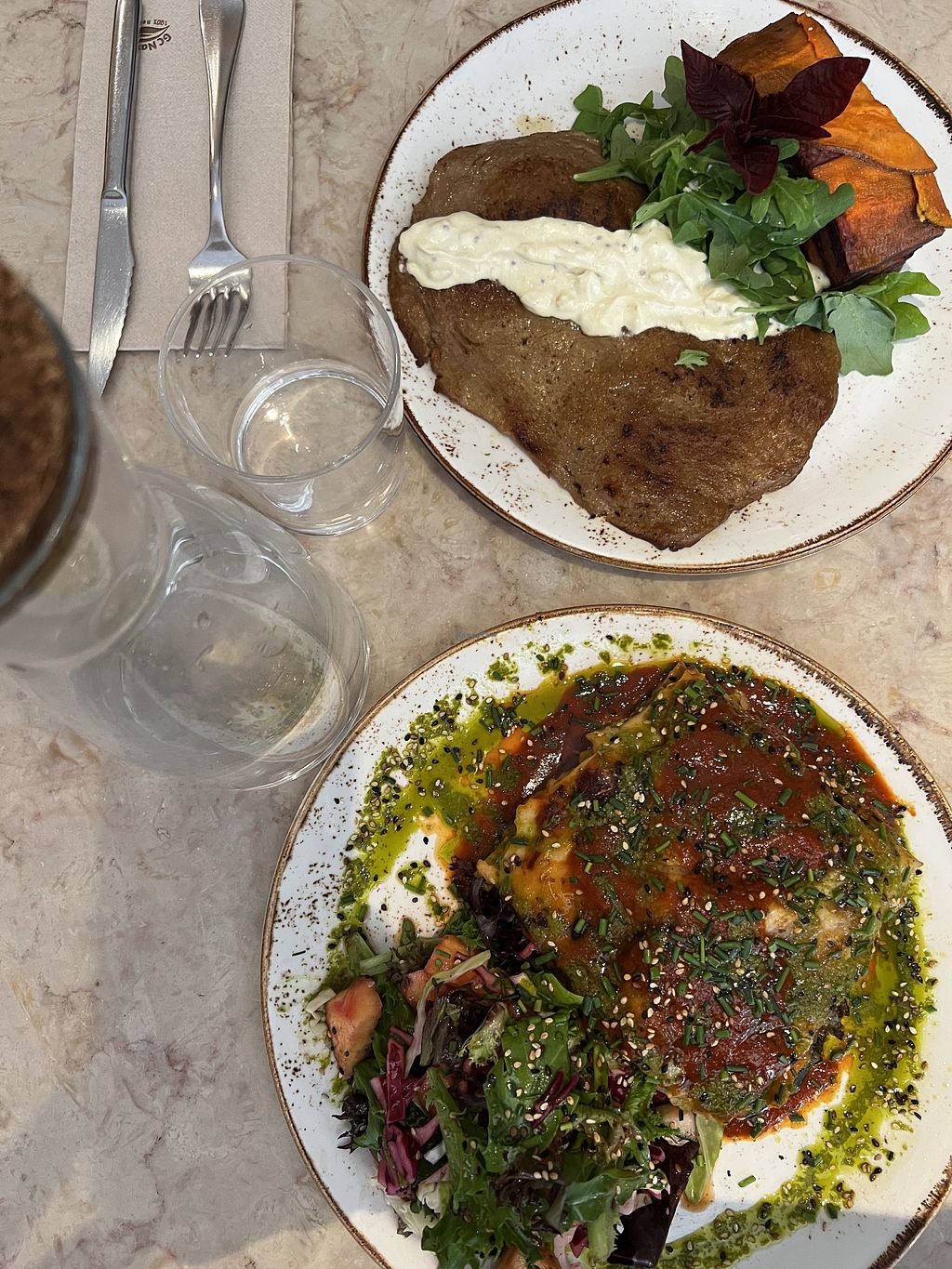 I went there with high expectations as a local vegan recommended us the place and was not disappointed! Every meal sounded very unique and delicious but we wanted to try all the traditional portuguese dishes so we had the starters plate of petiscos (portuguese "tapas"), the francesinha and matiné das 5 for dessert. Everything was lovely but the starters plate amazed me especially as I really liked their creative ways to create natural vegan substitutes for fish, octupus etc. I loved all of it and was full and very satisfied by the end! I would go on a longer vacation to Lisbon just so I could try my way through the entire menu. It's the kind of place that inspires you to be more creative and brave with your own cooking at home, it shows you the greatness that is possible with vegan cooking.
