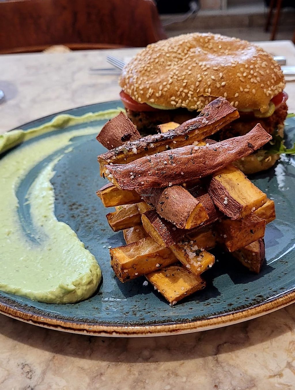 I'd eaten some good vegan food on my trip to Lisbon but nothing was as delicious as this. The flavours were incredible. I went for a burger and my partner went for the steak... you could tell the chef cared about the food! Went for a dessert as well because everything was so lovely!