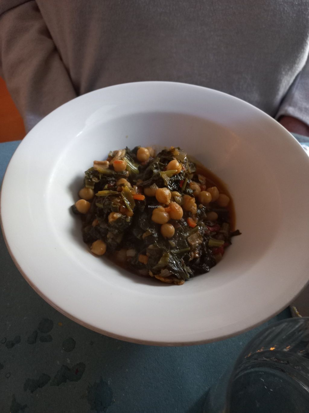 Cute enough place to sit outside and it was all vegetarian with vegan options. I didn't see any wine marked vegan though. The menu looked interesting (I guess it changes frequently) but unfortunately the food we chose was not very tasty. Tried hummus as a starter which was okay but the mains were flavourless.
