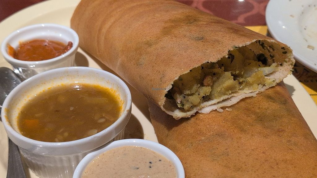 Serves meat, vegan options available. Indian restaurant with clearly labeled vegan dishes, including vegetable pakora, soup, other appetizers, fried rice, dosa, and more. Open Tue-Sun 11:00am-9:30pm. Closed Mon.