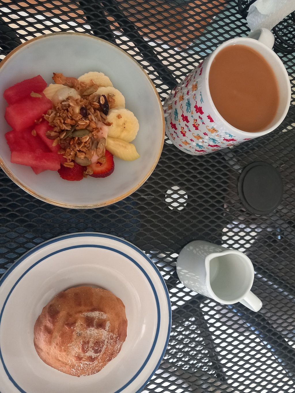 The portions are generous and with our main breakfast dish, we got a drink, sweet bread (a cinnamon bun) and fruit! And they brought more savoury bread out with our main dish! And it was crazy cheap for all this! So so yummy, shame it’s only on weekends but it was well worth waiting the week 🥰