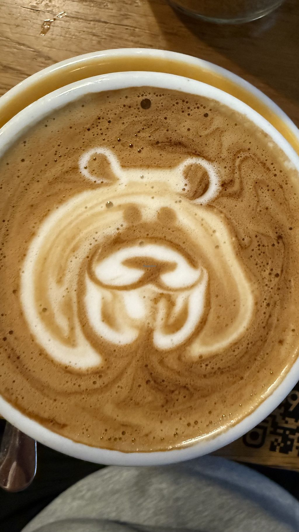 Excellent café avec option lait vegan dans un endroit sympa et cosy mais pas de patisseries vegan 🥲