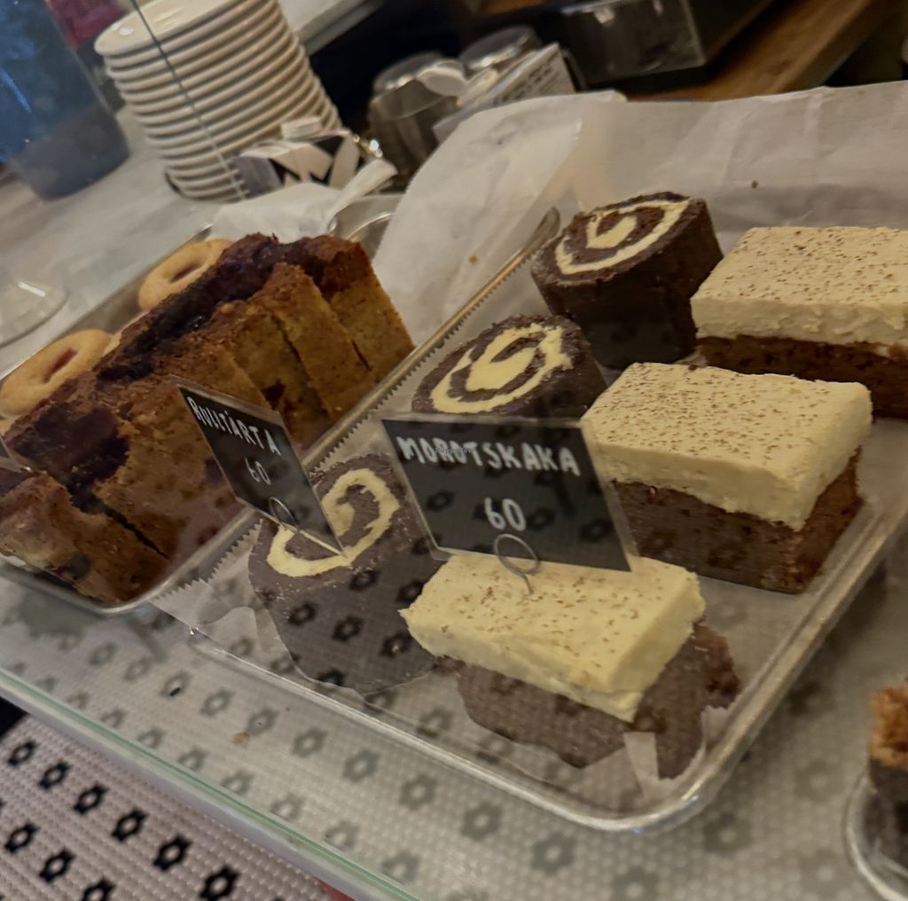 Small crazy cafe and bakery with tasty cakes and decent coffee