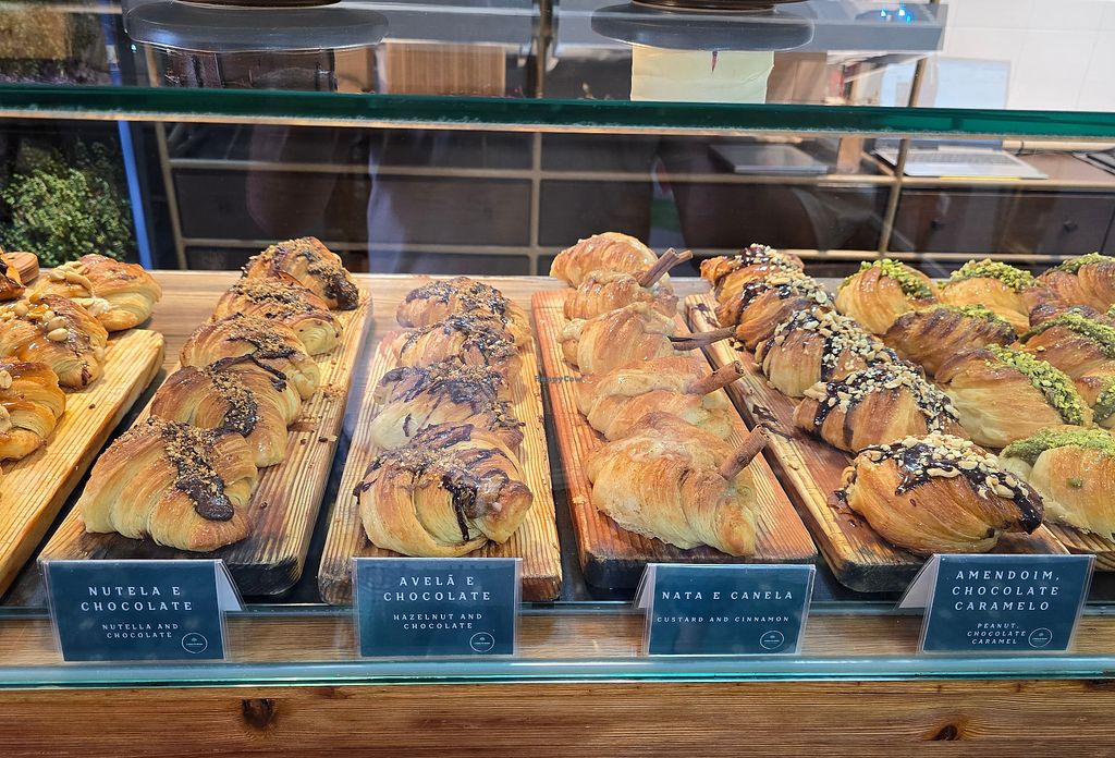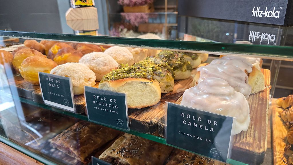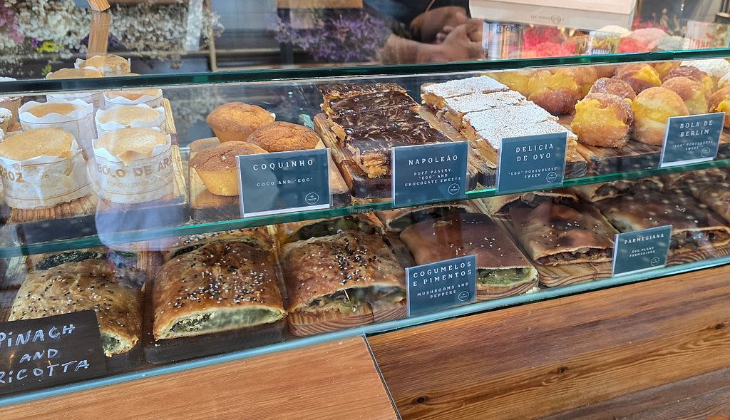Cafe and bakery offering a rotating menu and a large selection of sweet and savory baked goods. Dishes may include vegan eggs benedict, vegan ricotta toast, and shakshuka. Cake counter includes vegan nata, snickers croissants, Sintra pillows, and more. Open Tue-Fri 09:30-17:30, Sat 09:00-17:30, Sun 09:30-17:30.