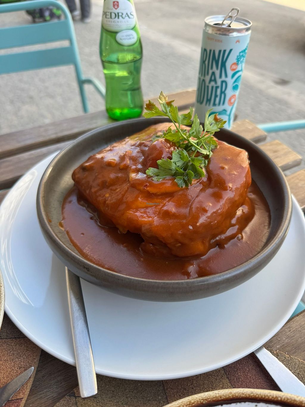 Read moreTambién probamos la francesinha, si te gusta lo picante y salado, es un plato ideal, además de abundante. Luego comimos un trozo de empanada relleno de salchicha, cebolla y maíz, estaba bien pero nos resulto un poco caro para lo que es, por ese precio hubiéramos probado otra cosa de la carta.
