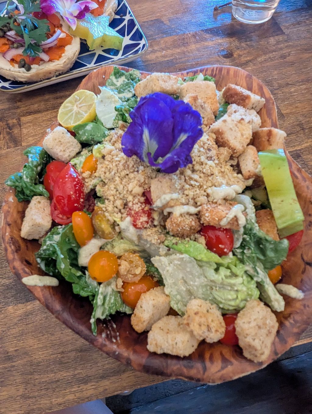 This is a nice, casual cafe with outdoor seating. I had tried this place via their food truck before the Lahaina fire and really enjoyed it so I made a point to try them again, this time in their cafe. I got the vegan Caesar salad and it was delicious. Can’t wait to come back to try more things.
