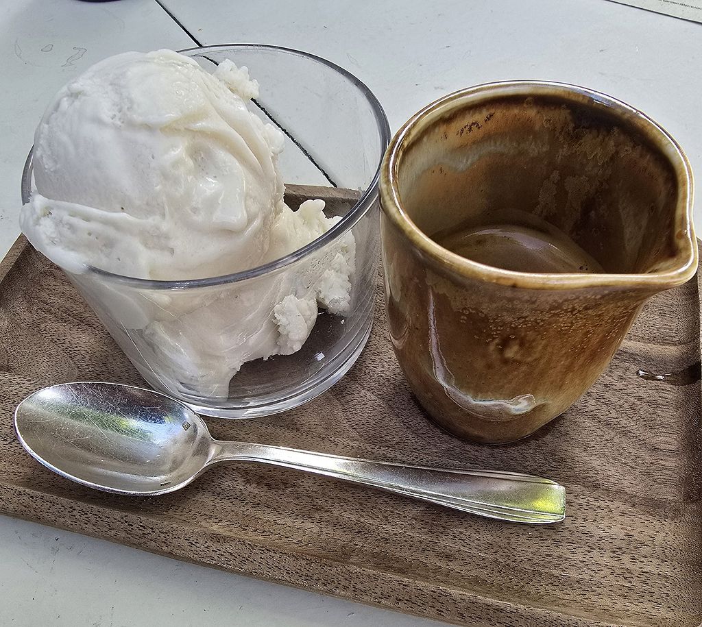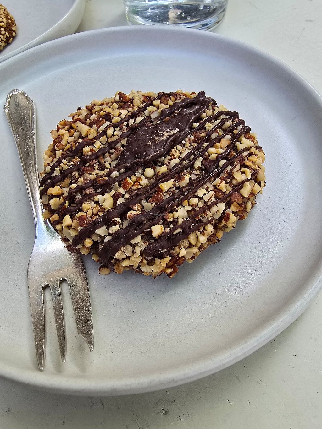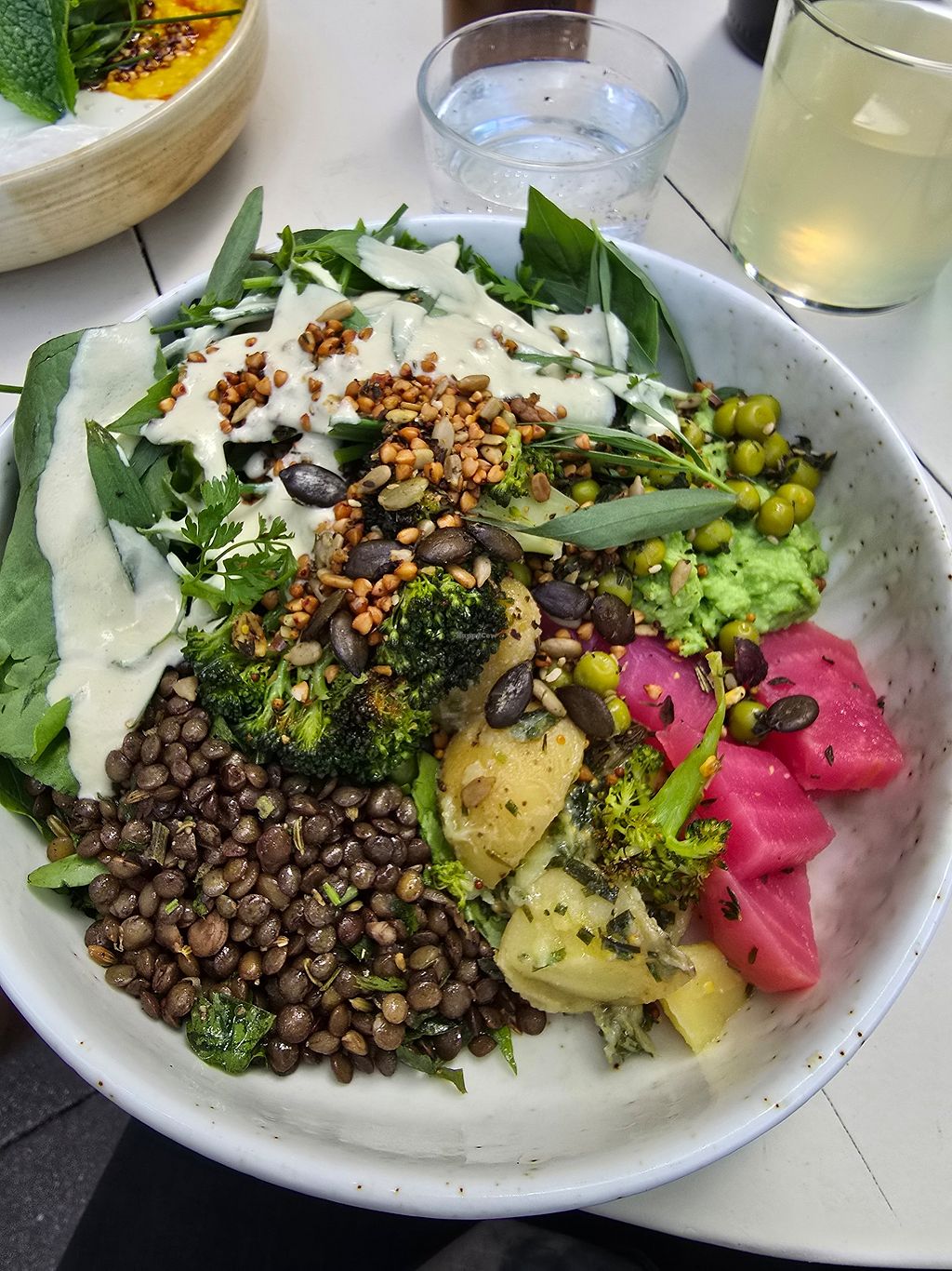 Der Miso Brokkoli war ein Traum. Die Chili Kartoffeln solide, die Spargel Tagliatelle nicht gut. Das Schokolademus überraschend und der Kuchen, den ich für den nächsten Tag mitnahm, sehr gut.
