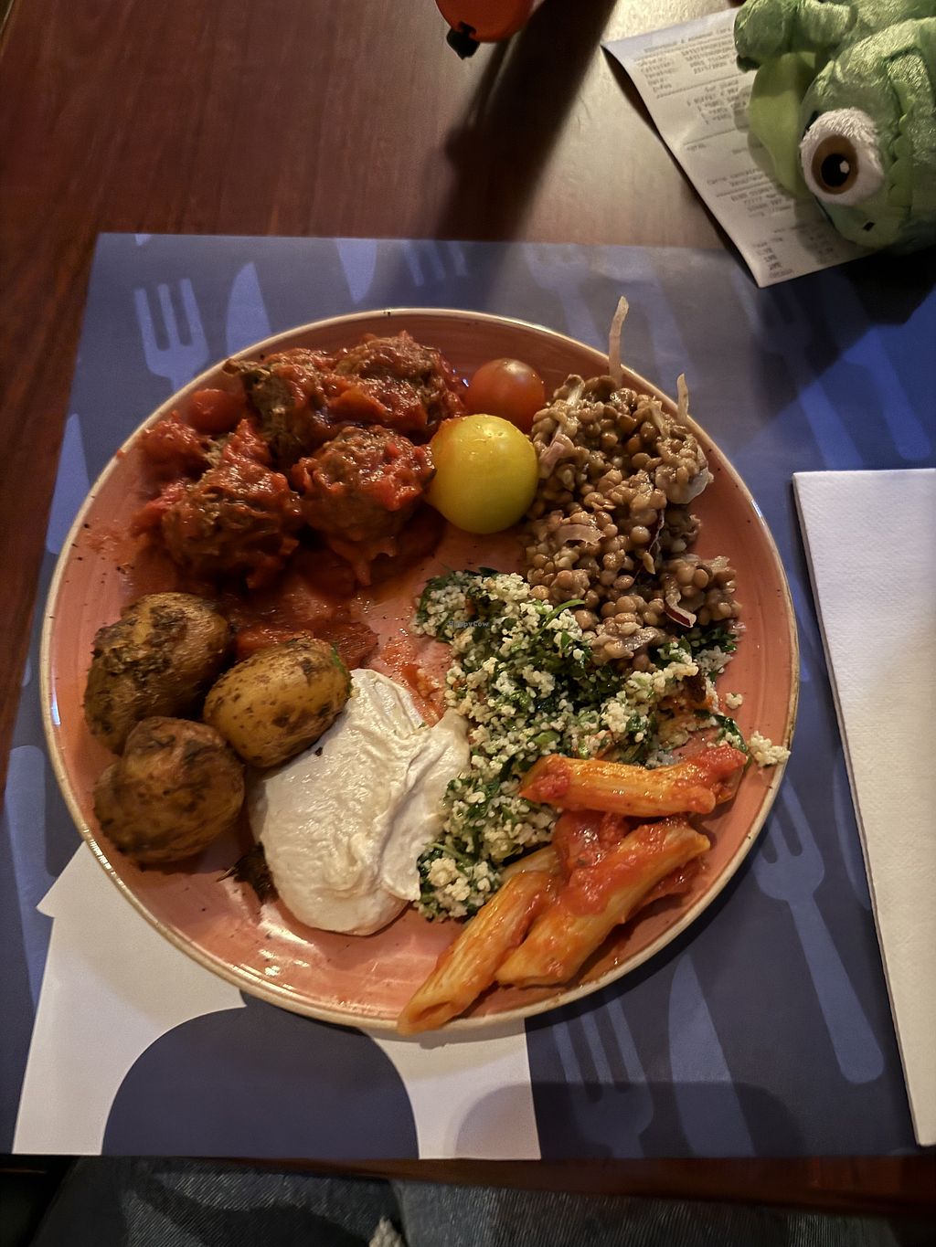Although the buffet is quite expensive, I believe the price is worth it for the amount of vegan options — as well as the ambiance. I didn’t manage to get good pictures, as I scarfed down my first plate and a half, but there are plenty of v proteins like spicy sausage, falafel & meatballs. I would recommend this out of any other restaurant in the park if you’re ok with spending 45€