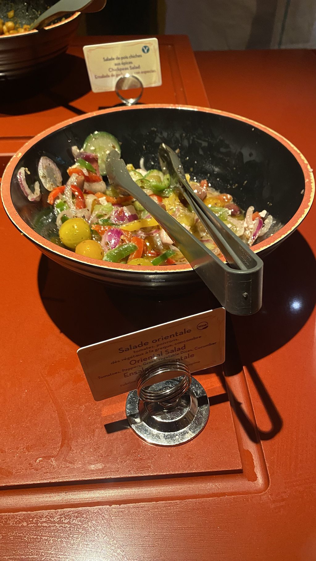If you want something other than a vegetable burger or a burrito this is literally the best place to eat in Disney . However none of the desserts bar Fruit salad was vegan and they had to get the ingredient book out when I asked them … the servers didn’t have a clue !