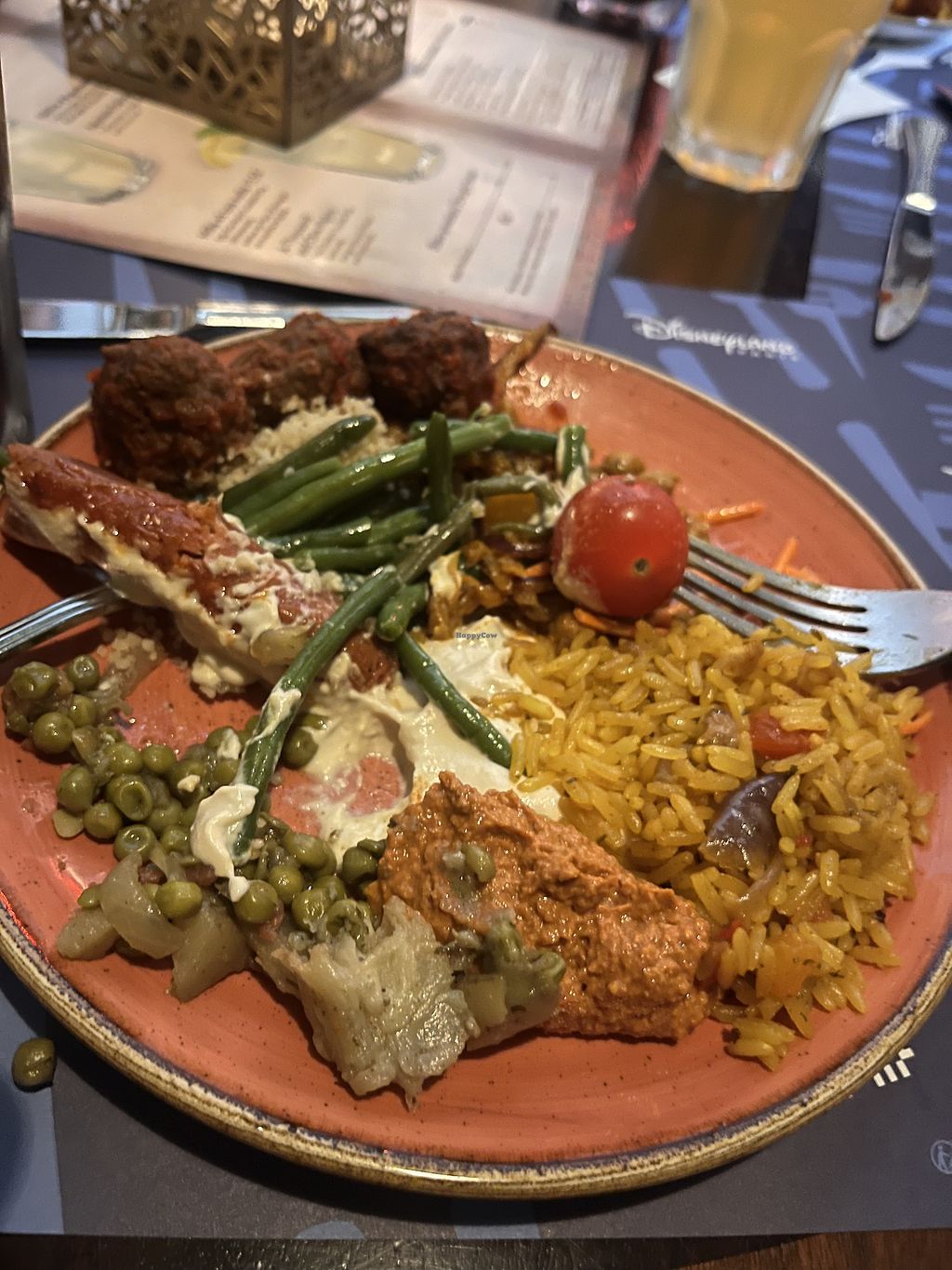 Some of the best vegan food we had at Disneyland Paris! Agrabah Café offers plenty of vegan options, including dessert, all bursting with delicious flavours. The staff were friendly, and the atmosphere was absolutely incredible, such a unique and immersive dining experience. So glad we stopped for dinner!