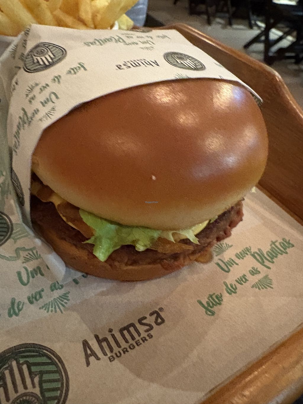 O ponto alto do ahimsa e o hambúrguer, desenvolvido em parceria com a UFSC. Tem gosto de carne, parecido com o do Futuro Burger, e é muuuito bom! O pão de brioche é macio e de longe, o melhor dentre as outras opções do cardápio :)