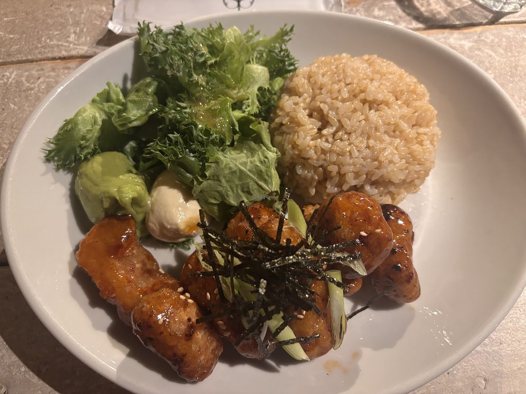 We had high expectations due to the large number of good reviews of Ain Soph. We have ordered the „Soy cutlet burger“ with fries, the „Teriyaki deep fried soy on rice“ and a pancake. Portion size and the food at all doesn’t represent a fair value. The burger is the epitome of junk food and comes with sprinkles of fries and a curry ketchup. The deep fried soy on rice is pretty basic dish and won’t surprise you with anything. As dessert we had a pancake with blueberry’s, vanilla icecream, heavy cream and some fruits. The pancake is more relatable to a cake batter and probably not what you expect from a pancake.
