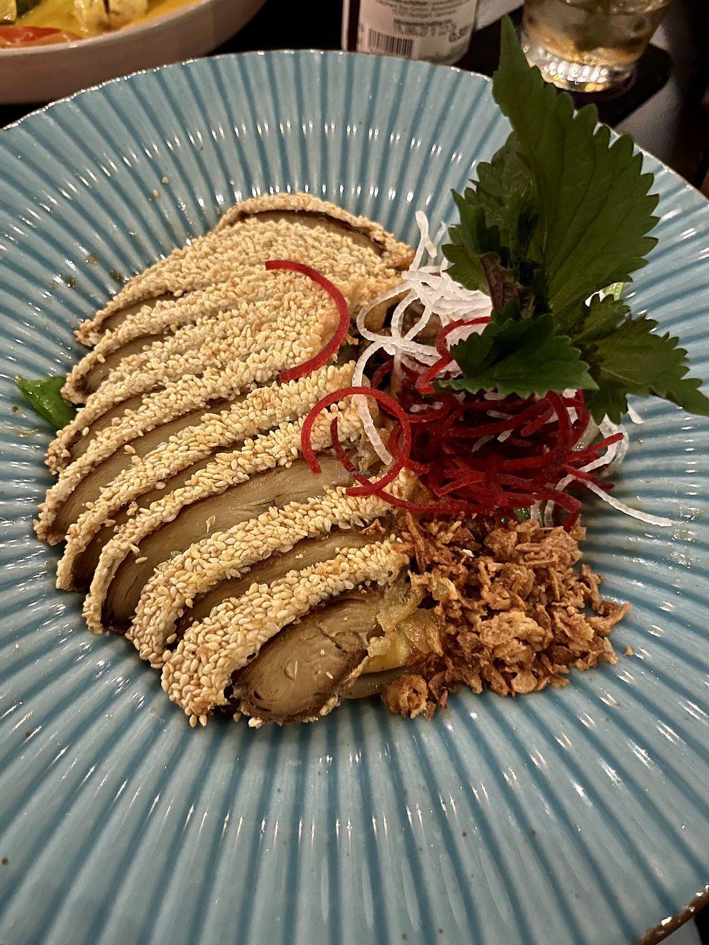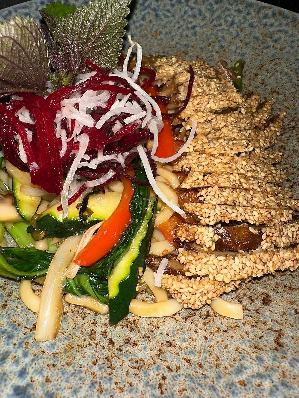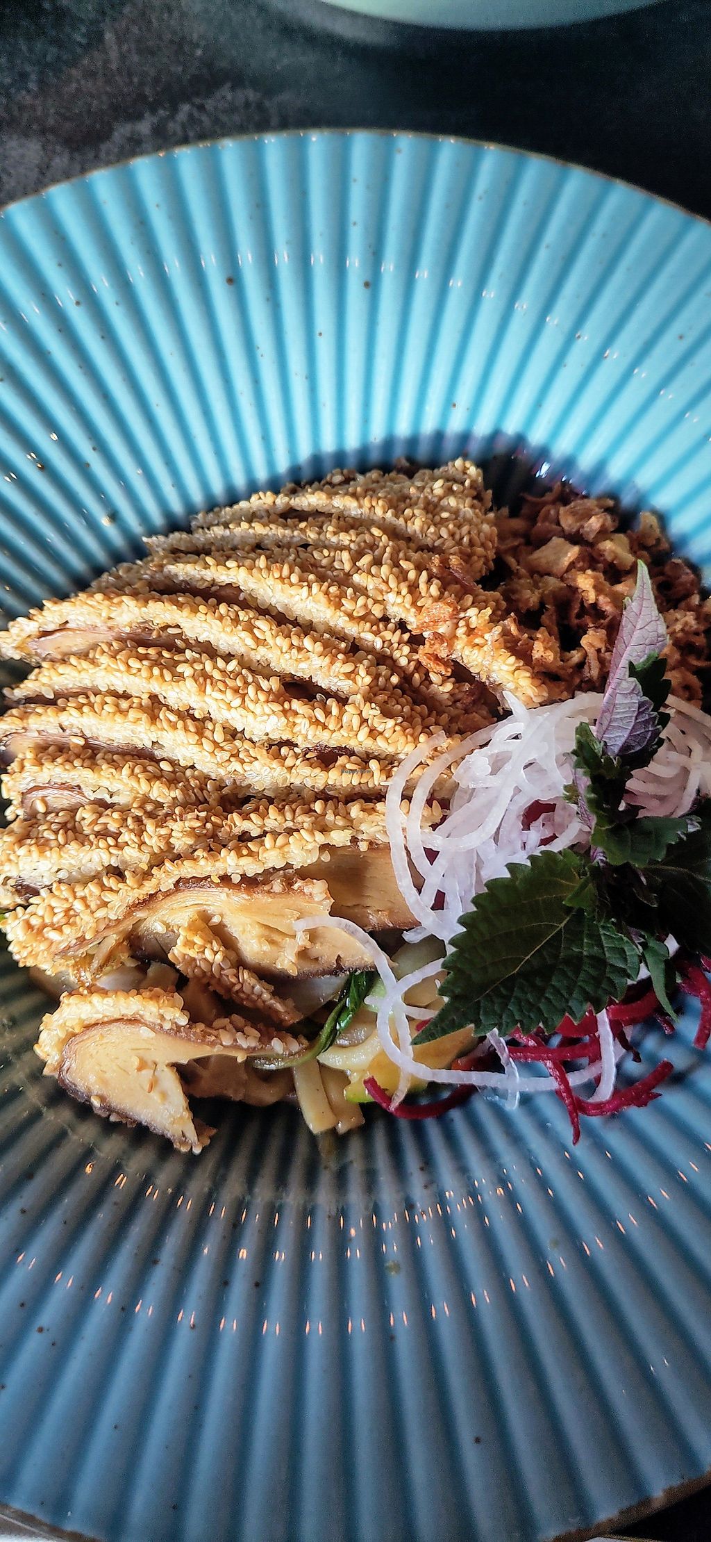 Sehr gute Ersatzprodukte, wie Ente und Thunfisch. Leider nur eine Bedienung für das gesamte Restaurant (mittags). Sehr schöne entspannte Atmosphäre.