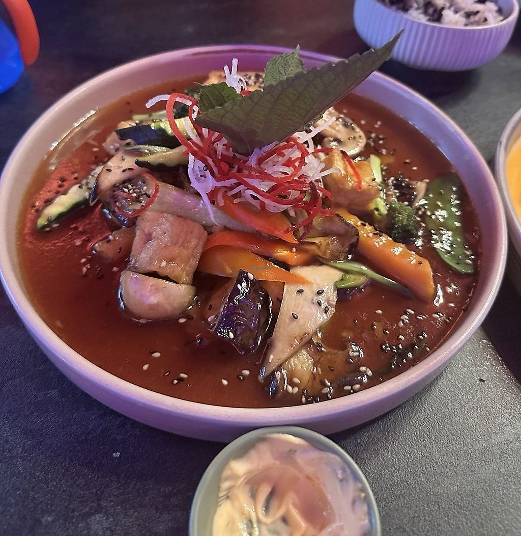 Est. Nov. 2023. A modern vegan Vietnamese fusion restaurant serving dishes and sushi. Companion animal friendly. Open Mon-Fri 11:30-15:00, Mon-Thu 17:30-23:00, Fri-Sat 17:30-00:00, Sat-Sun 12:30-15:00, Sun 17:30-23:00. Closed Mon.
