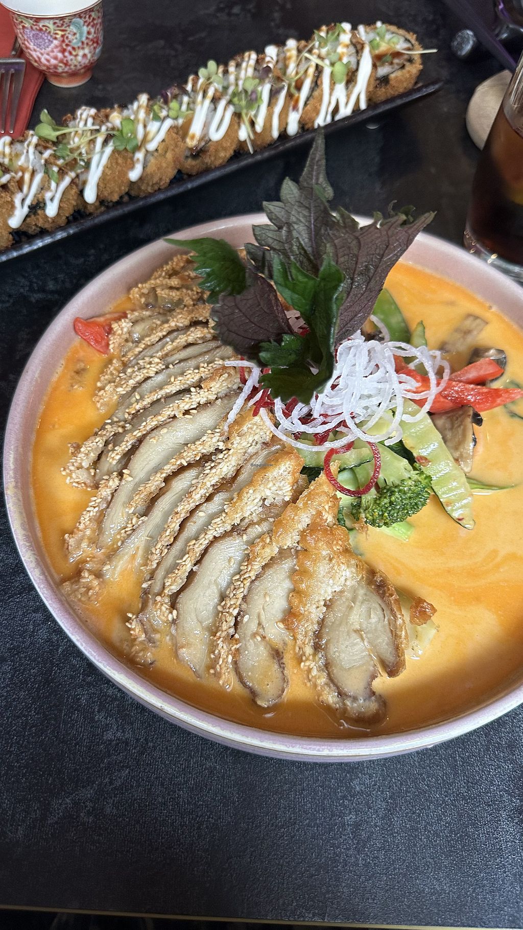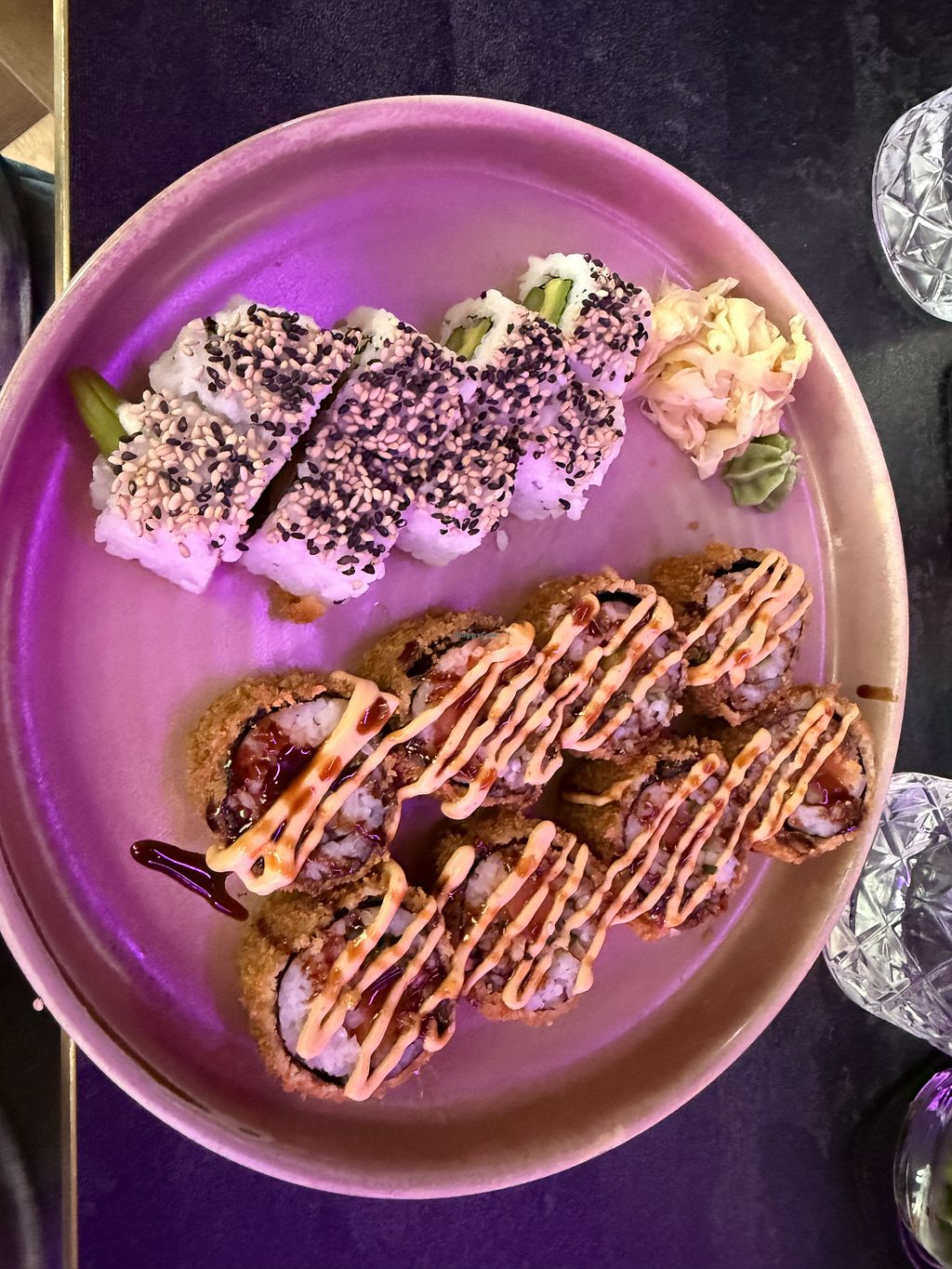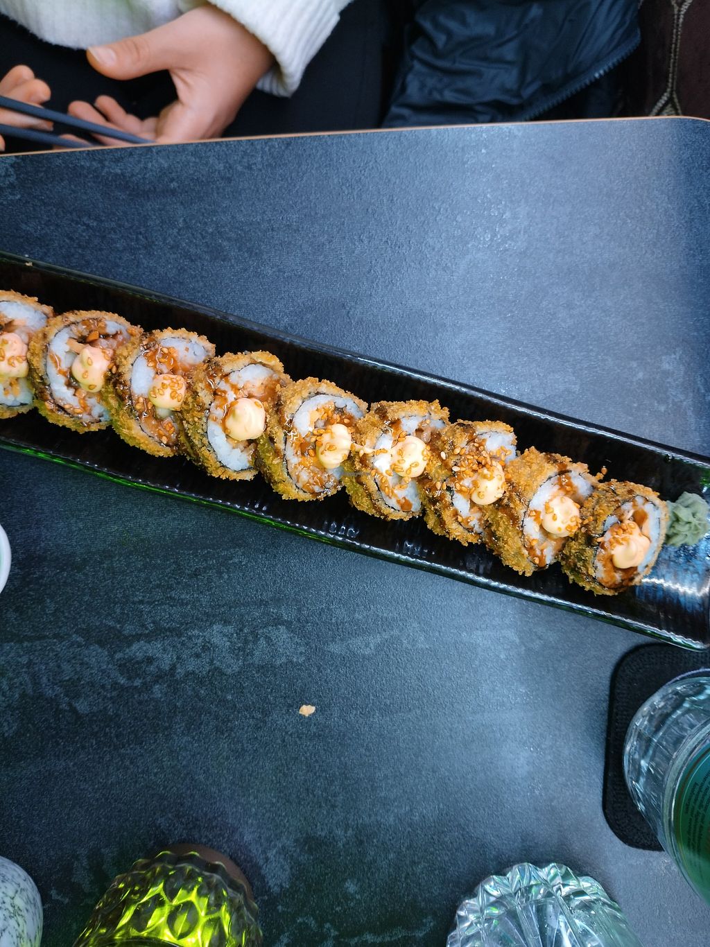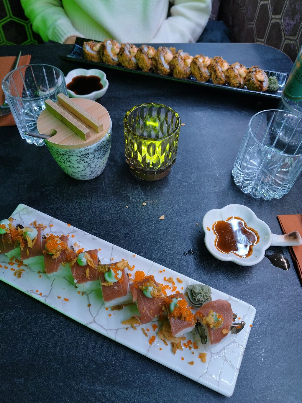 Es war alles SEHR lecker, die vegane Ente war zum reinlegen. Die Fried Enoki waren etwas zu fettig, aber das ist wahrscheinlich Geschmackssache. Das Sushi war unglaublich!