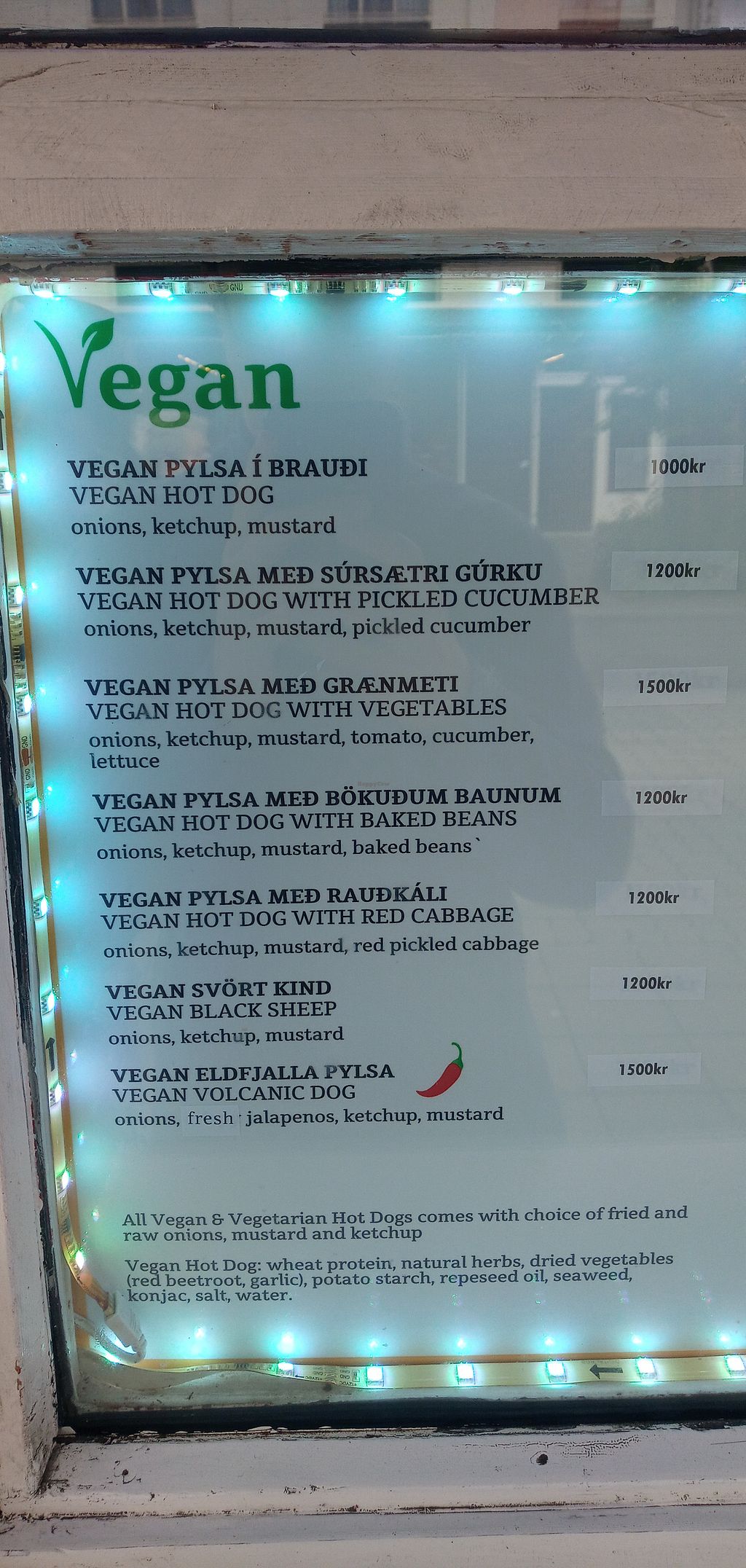 It was nice to finally be able to try a vegan icelandic hot dog. The volcanic dog was my favorite. Gonna go back tomorrow and get another one.