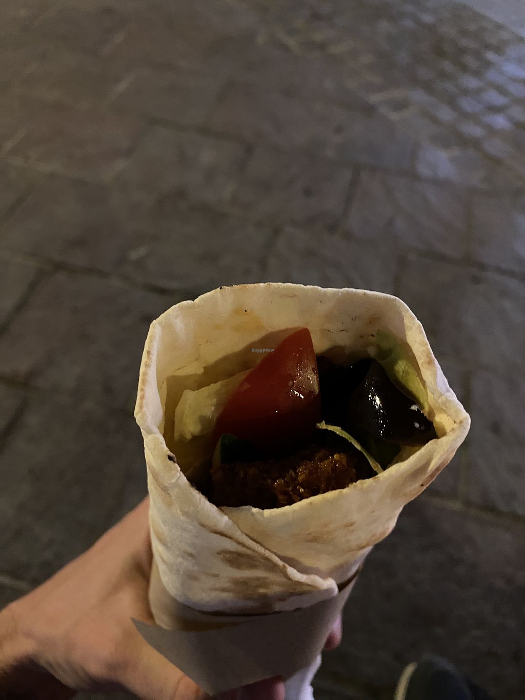Wir hatten Falafel mit Tabbouleh. Es war lecker und man konnte es gut essen, denn der Wrap war fest eingedreht. Das Brot war auch super, es ist nicht durchgeweicht. So konnte ich meinen Wrap sogar später noch kalt essen. Man kann mit Karte bezahlen.