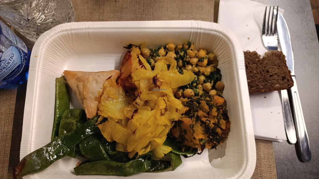 this is my first option when I'm in Milan and want to have a tasty and comforting dinner. they have huge variety of dishes, with several proteins, and all of them are delicious. you can take small portions and taste whatever you want - you will pay by weight. today I had tempeh with mushrooms, chickpeas and spinach, seitan with tomato sauce, samosas, caponata and a WONDERFUL pumpkin with tomato sauce. they always offer multigrain bread and a cream similar to hummus but a lot more creamy and delicate - they're included also if you take away your meal.