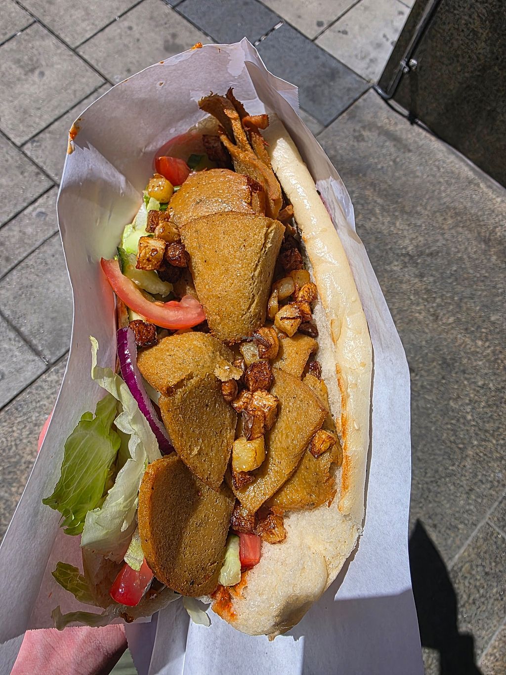 But it was my favorite sandwich ever. Got the seitan sandwich 2x in 2 days it hits the spot so hard... GO! Make sure you say ganz vegan if they ask. They have vegan sauce but also will offer yogurt and they speak much better German than English.