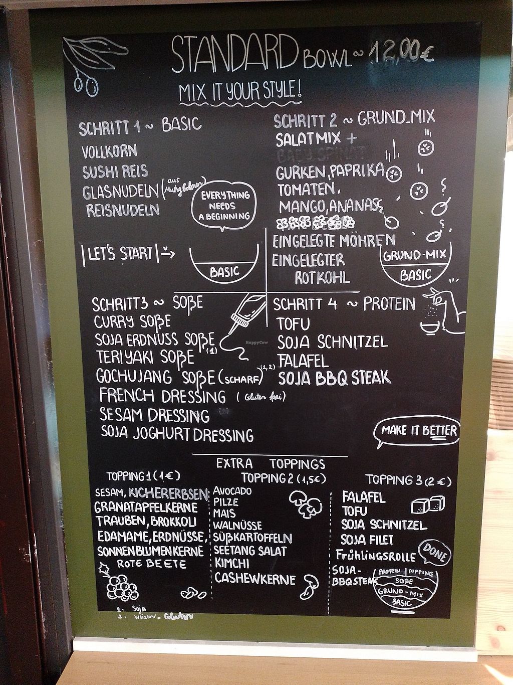 We took the "all vegan bowl" and the "falafel bowl" but there are a lot of options to choose from and you can also build your own bowls. Everything is vegan. The stuff is nice and the price is amazing for the size of the bowls.