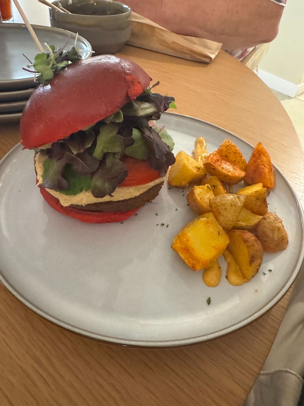 Vegetarian restaurant, offering a menu with many clearly labeled vegan options. The specialty is Açai bowls, complemented by a wider selection that includes juices, burgers, wraps, salad bowls, falafel, and hummus. Allergens are clearly indicated on the menu. Open Mon-Sun 09:30-20:00.