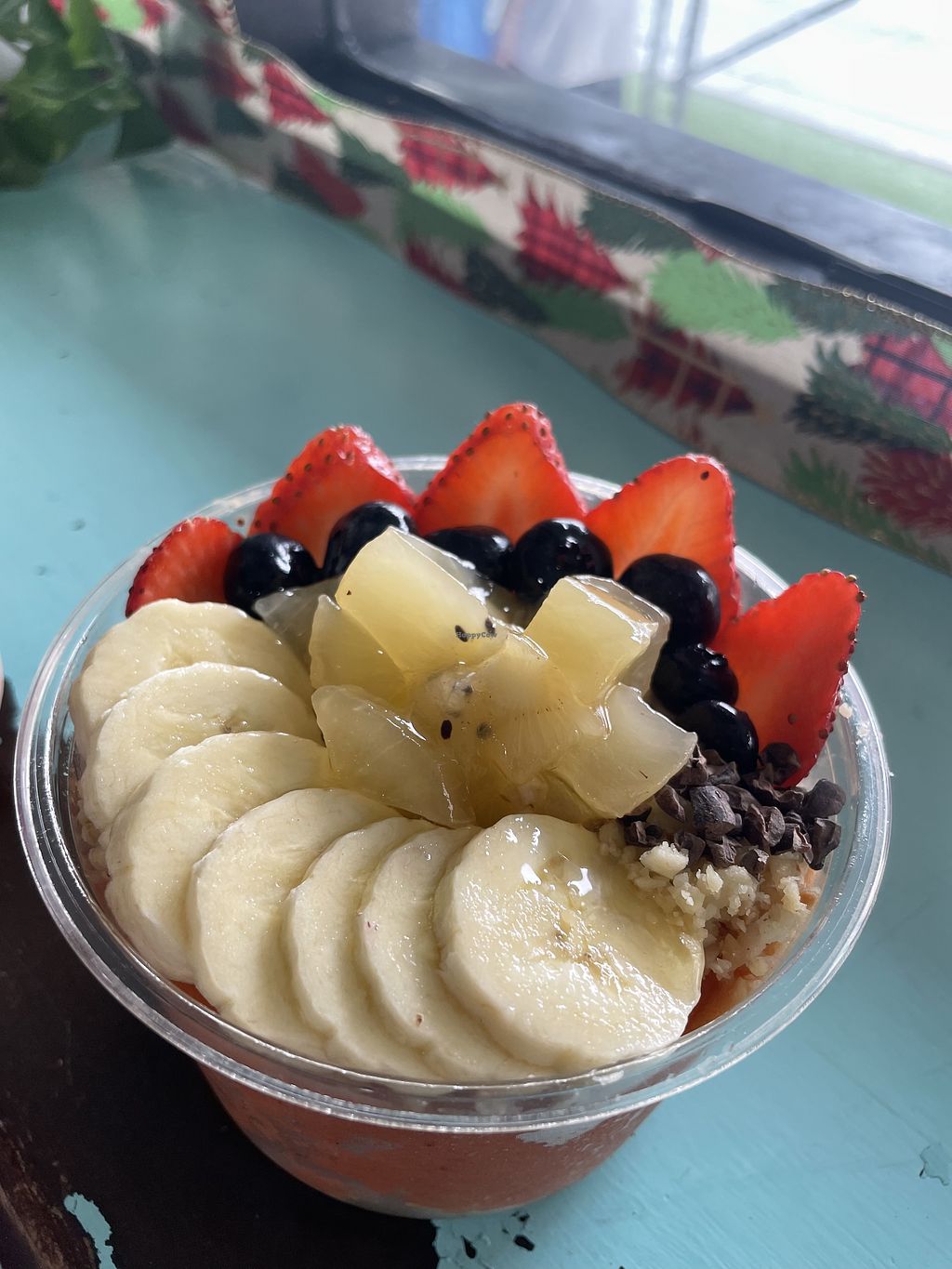I had the cacao bowl and it was so fresh and delicious. I added honey and hemp seeds to mine. The fruit was so fresh and soft, perfect! Everything is plant based besides some honey in items or upon request. Not much seating though, it is more of grab and go.
