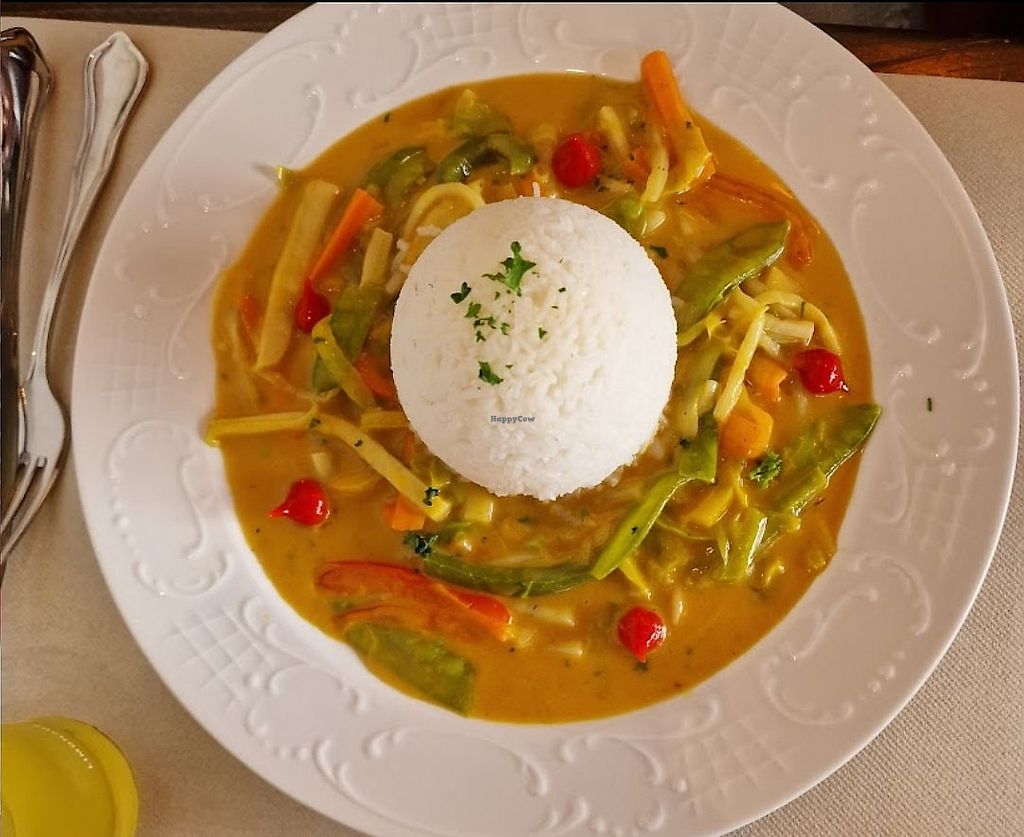 Serves meat, vegan options available. Restaurant with a garden and children's' playground. Offers a Thai curry with basmati rice and salad. Open Tue-Thu 12:00-20:30, Fri-Sat 12:00-21:00, Sun 12:00-20:30.