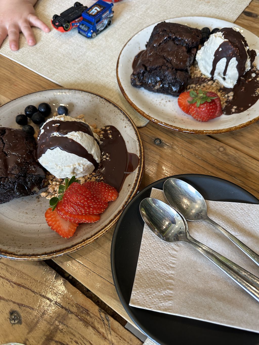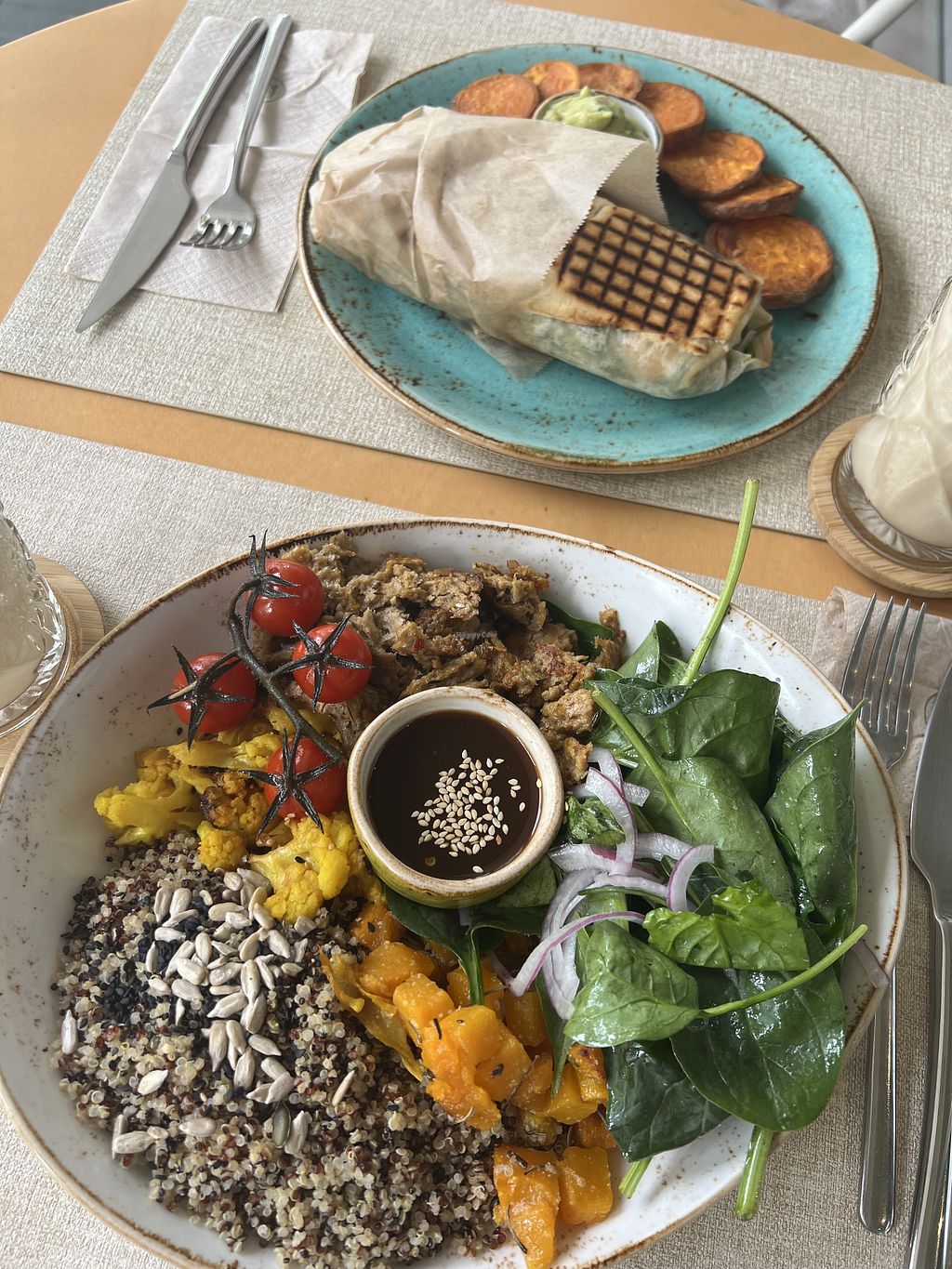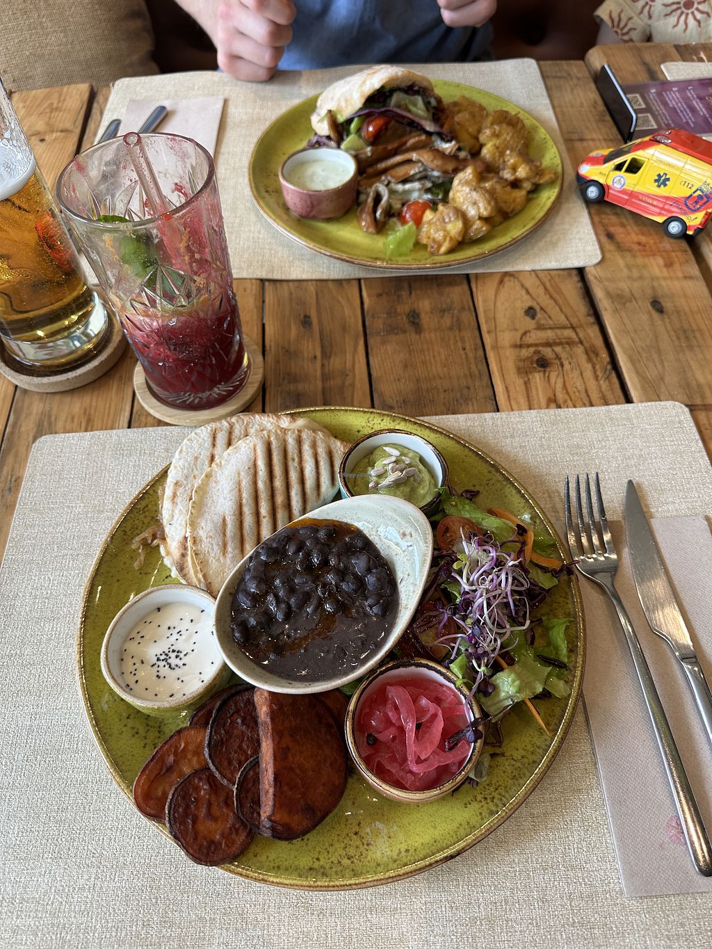 Wij hebben hier de pinsas met groenten gegeten en een plant power wrap. Het was overheerlijk, maar ook hele grote porties: wees dus gewaarschuwd😉Hele vriendelijke medewerkster en een heel gezellig restaurant. Heel sfeervol en groen. Voor een toetje was geen ruimte meer over, maar die zagen me er toch lekker uit! Reden om nog een keer terug te komen😉