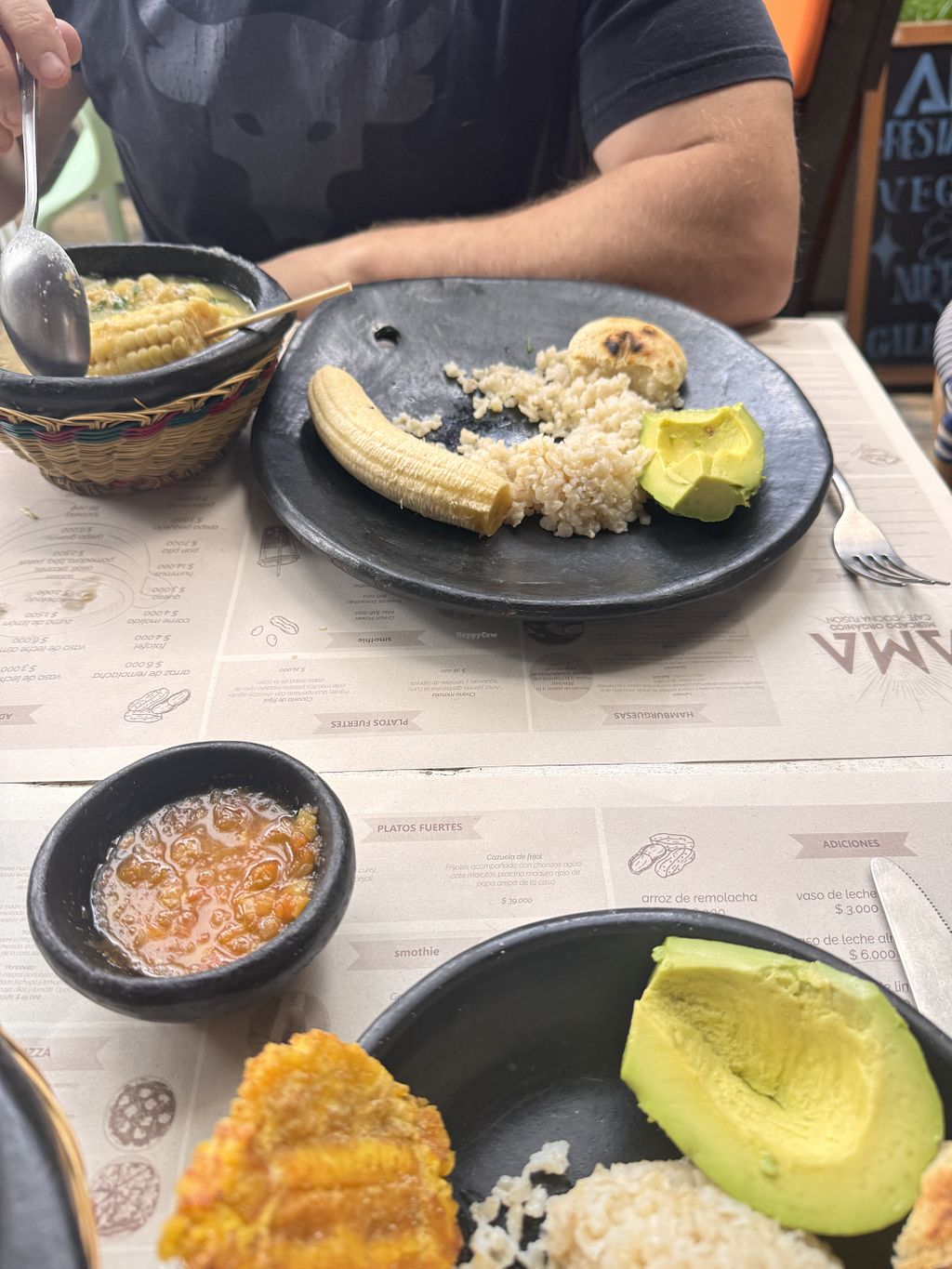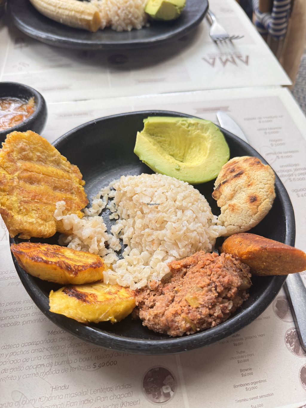 I ordered the Bandeja Paisa and I have to say it was super delicious, the waitress recommended it as being one of their Colombian dishes. It comes with a bean soup, brown rice, a lentil accompaniment, vegan sausage, avocado, arepa, a slice of plantain, and patacones. Be warned - you will be full!! But you can always purchase a cardboard take home container😉As for the vibe, it’s a cute cosy little spot and they have free wifi.