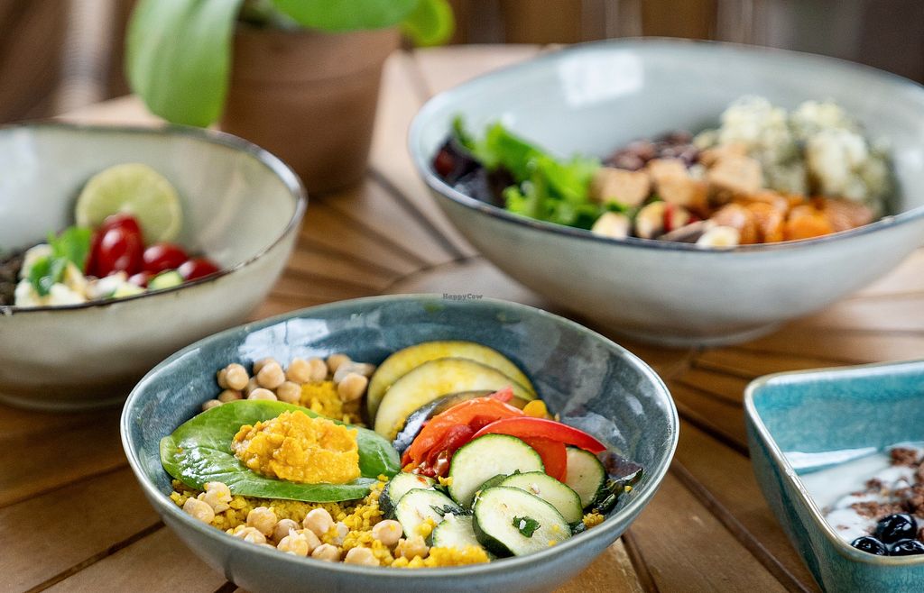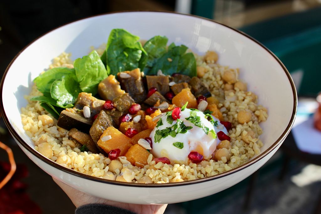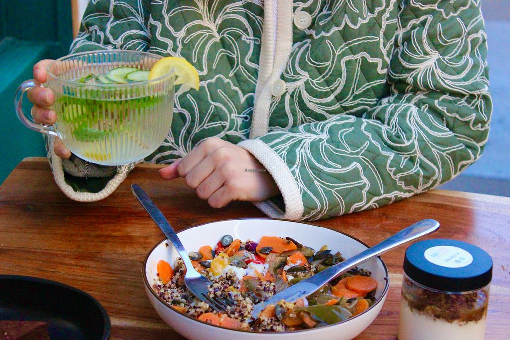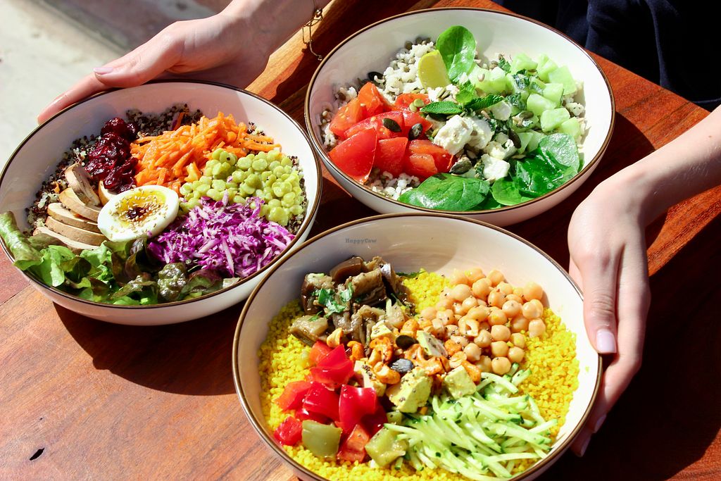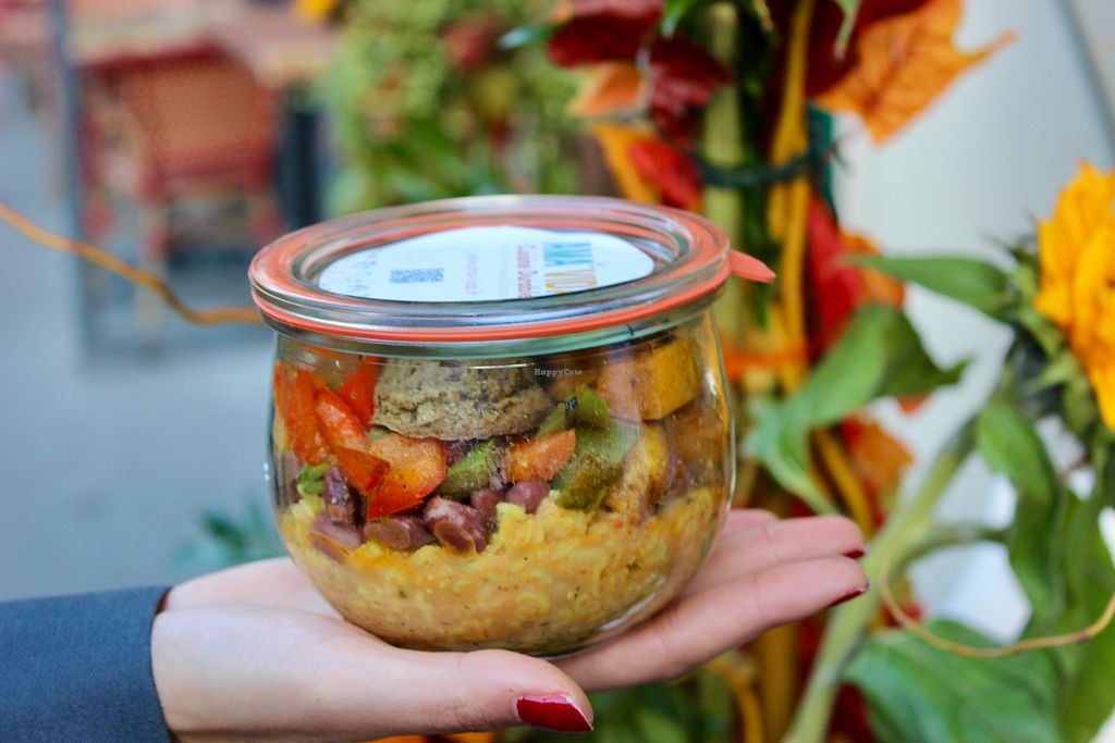They offer custom bowls. Everything to put in it is vegan except eggs or feta you can add as topping (if you are not vegan). I had the tajine bowl with marinated tofu, really tasty.