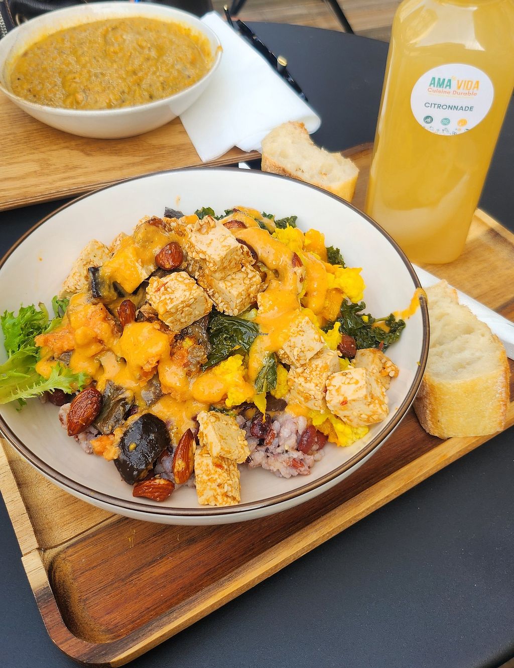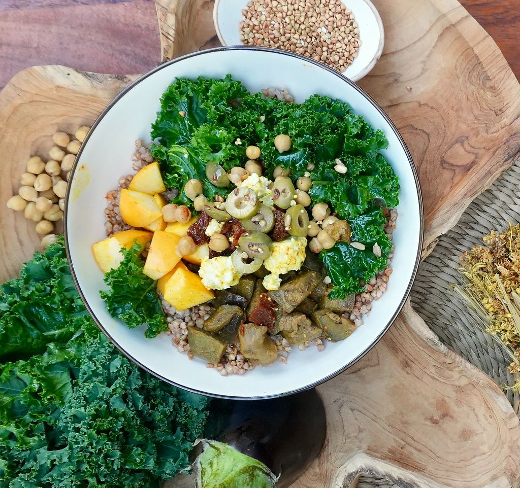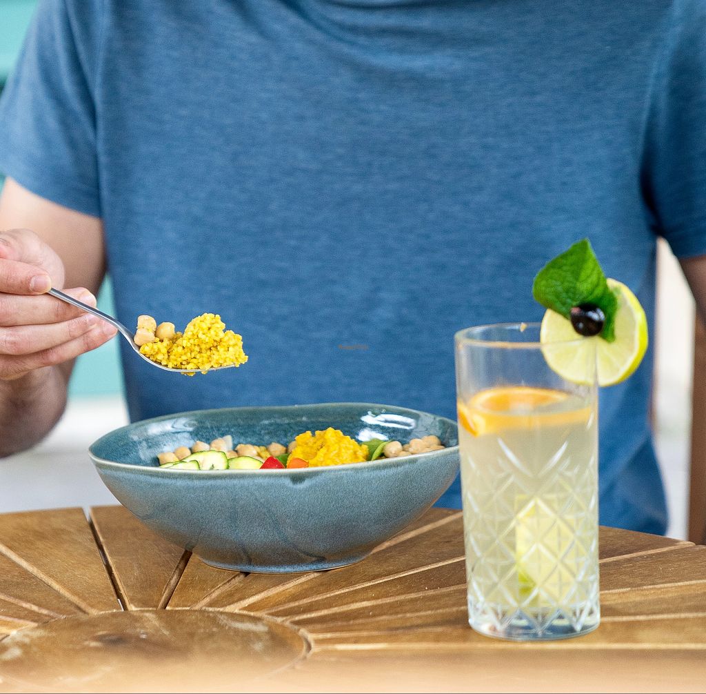 They offer custom bowls. Everything to put in it is vegan except eggs or feta you can add as topping (if you are not vegan). I had the tajine bowl with marinated tofu, really tasty.