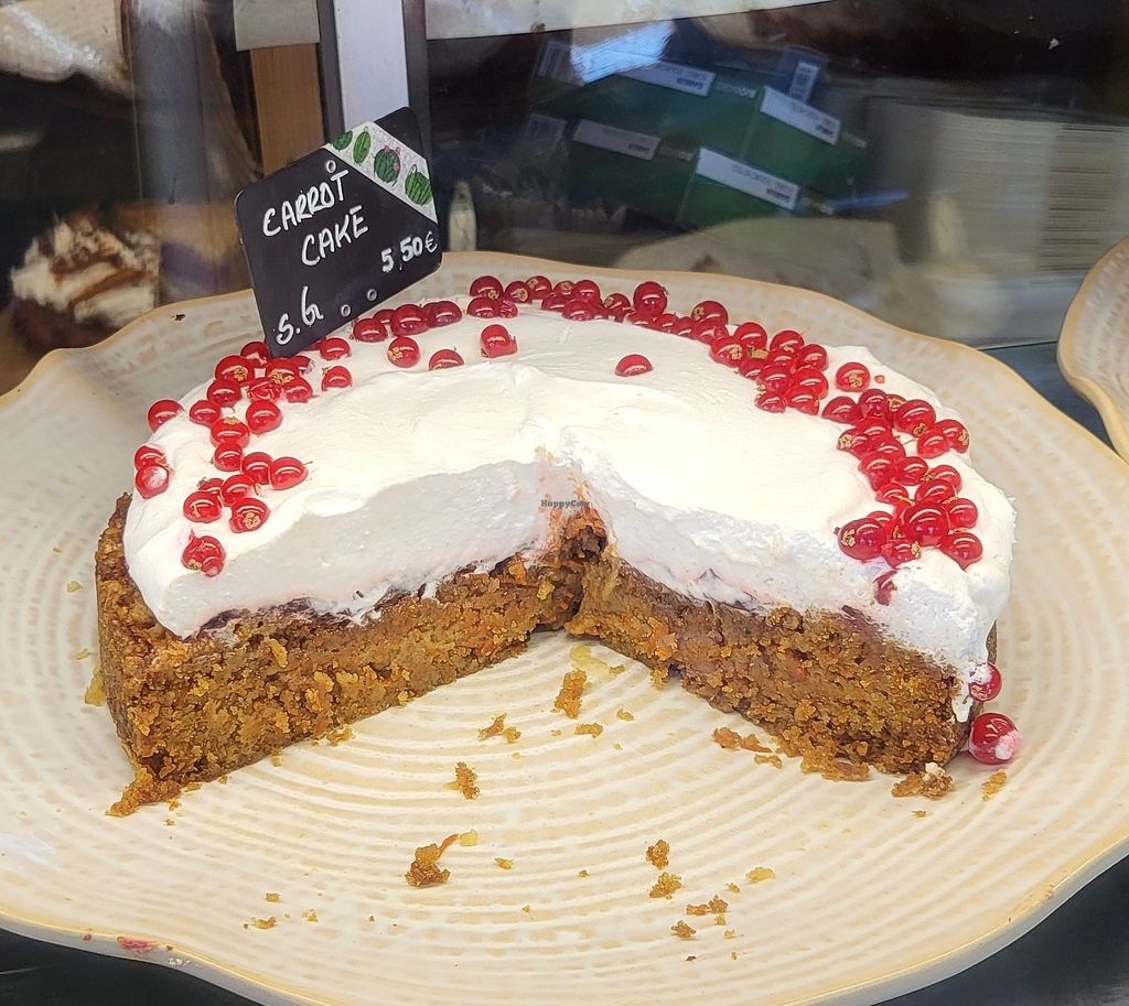 Vegan banana bread, coffee with vegan milks, smoothies, avocado bread, daily vegan offering I had a falafel wrap. The desserts are amazing! We had a vanilla sponge with lots of cream and berries and THE carrot cake! Best carrot cake ever! Vegan options are well marked and staff is very welcoming, excellent service.