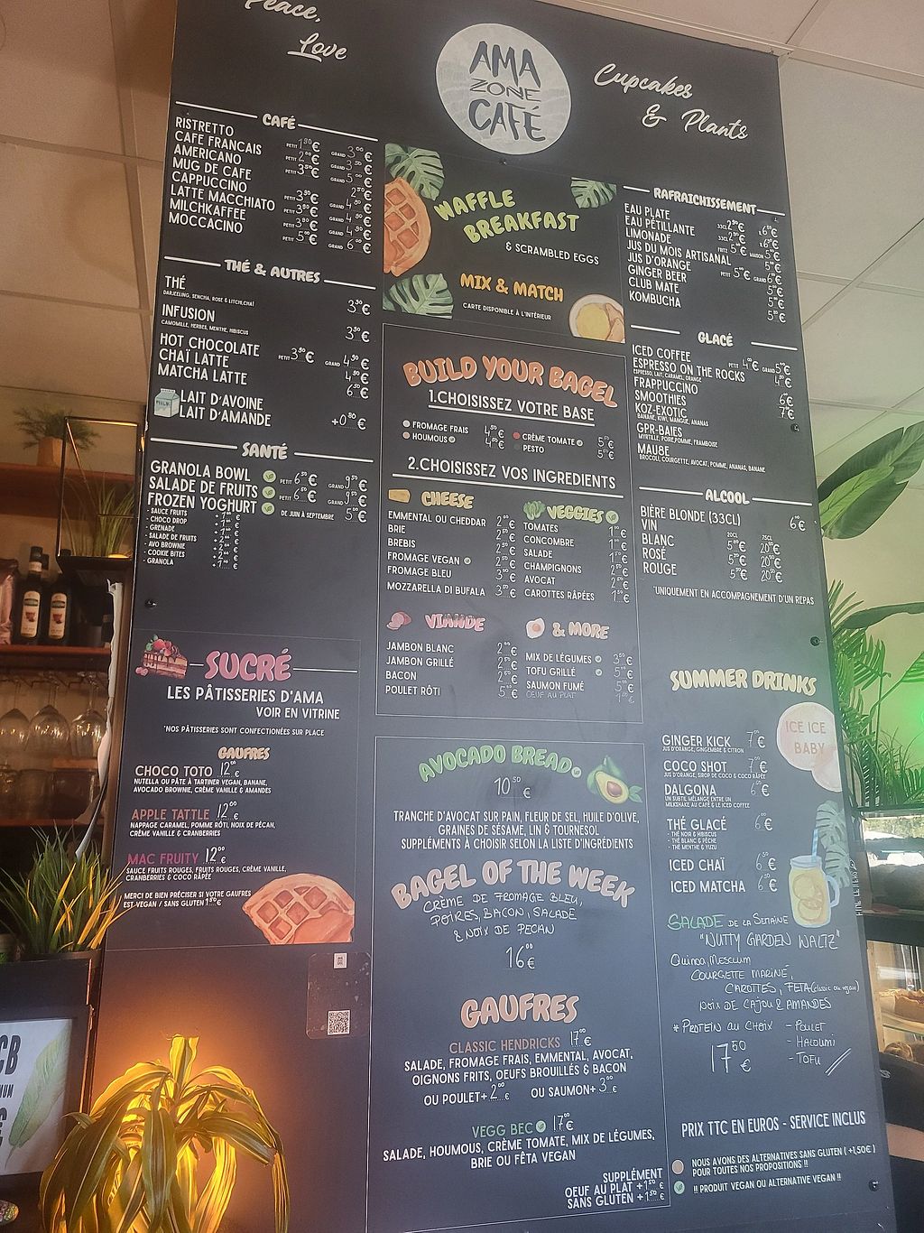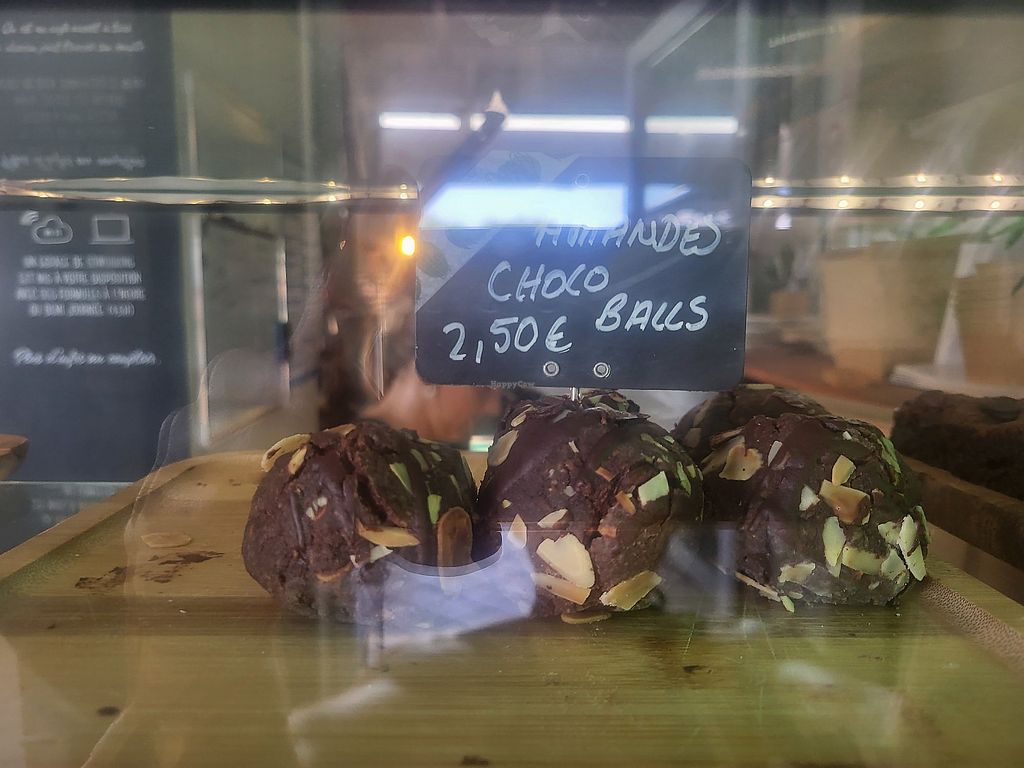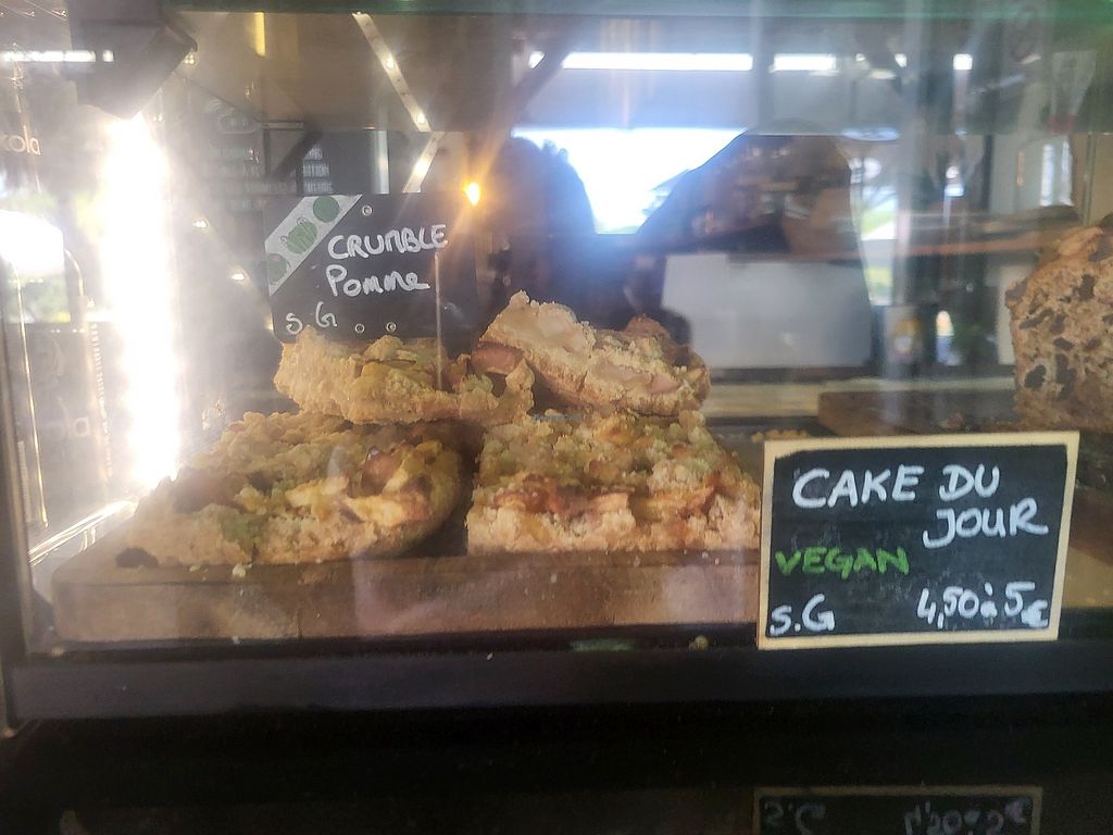 The cafe has lots of options on different vegan cakes, cookies and coffees. The waitress extra explained everything in English to me and I had a bagel (you can choose the toppings), a slice of fruitcake and Dalgona Coffee with oat milk. Very delicious. I think it's a bit expensive, but I honestly enjoyed it. The vegan options are clearly labelled and if you don't speak French, like me, then just ask and they will explain it. The waitress had a very positive attitude, that was amazing.