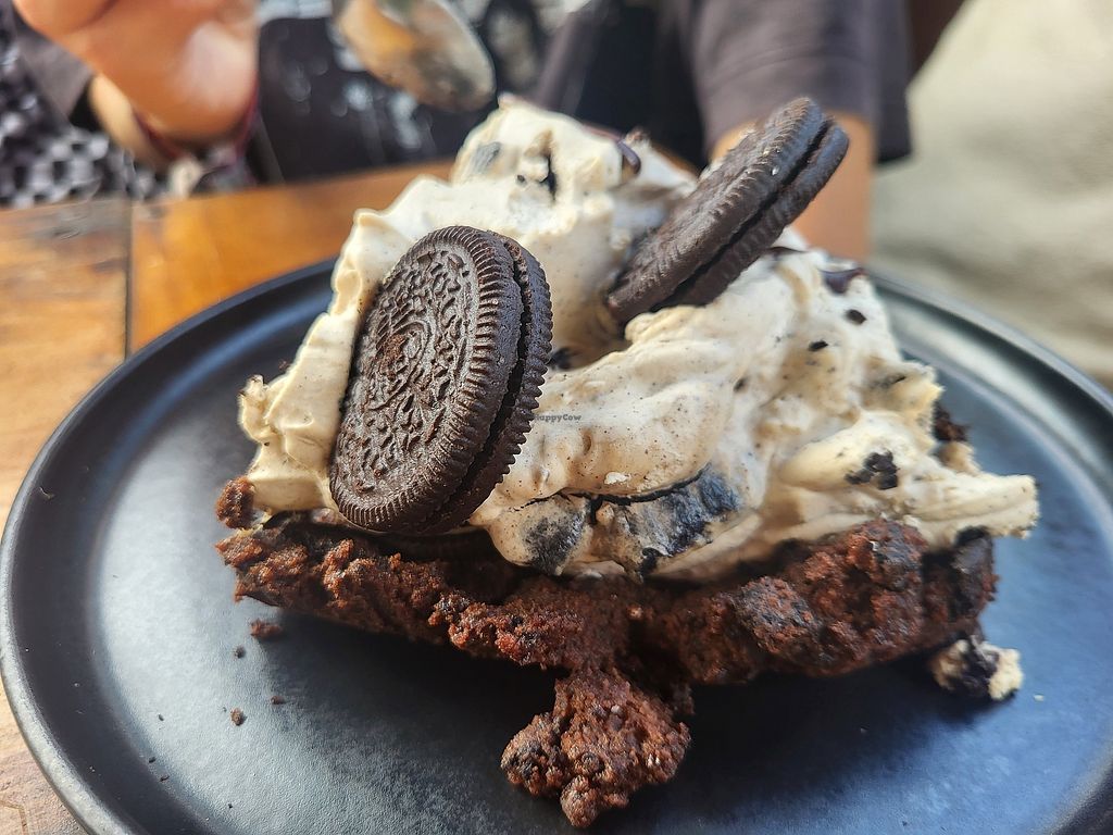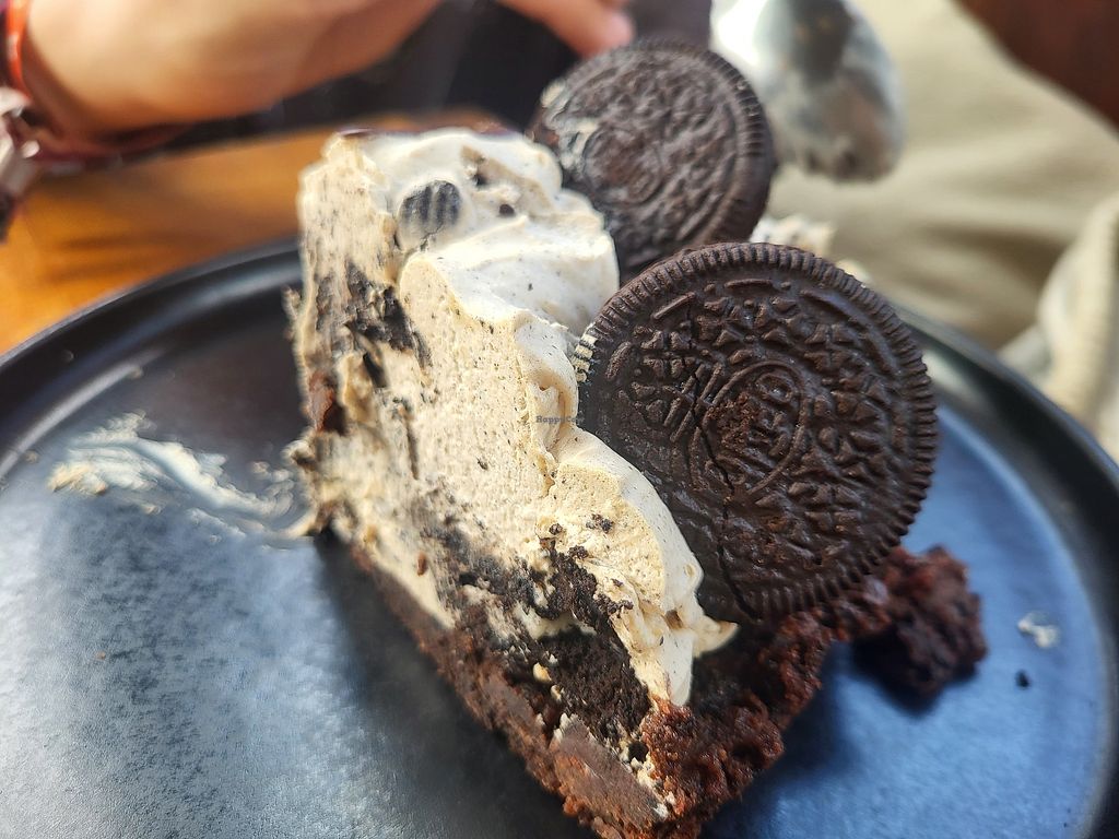 Had a delicious vegan bagel. You can build your own bagel with, for example, vegan cheese and smoked tofu and lots of vegetables. There is also a selection of vegan cakes and the pieces you get are really bizarrely large. Nice chill place with a nice vibe.