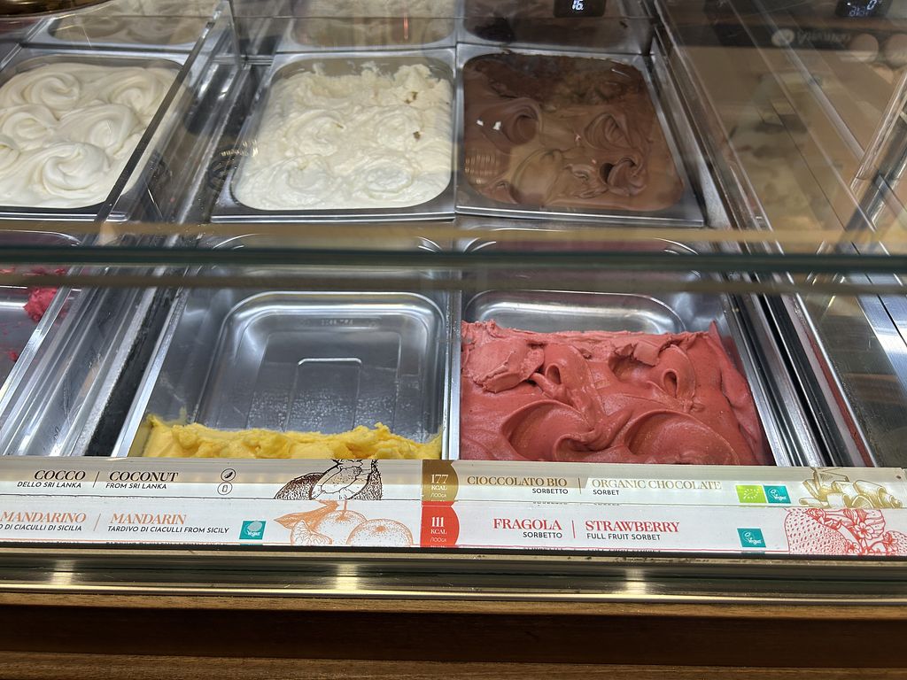 There are several vegan options here including chocolate, mango, orange, blood orange and a couple of others (I don’t remember all). I’ve tried the orange, blood orange and chocolate and all are delicious.