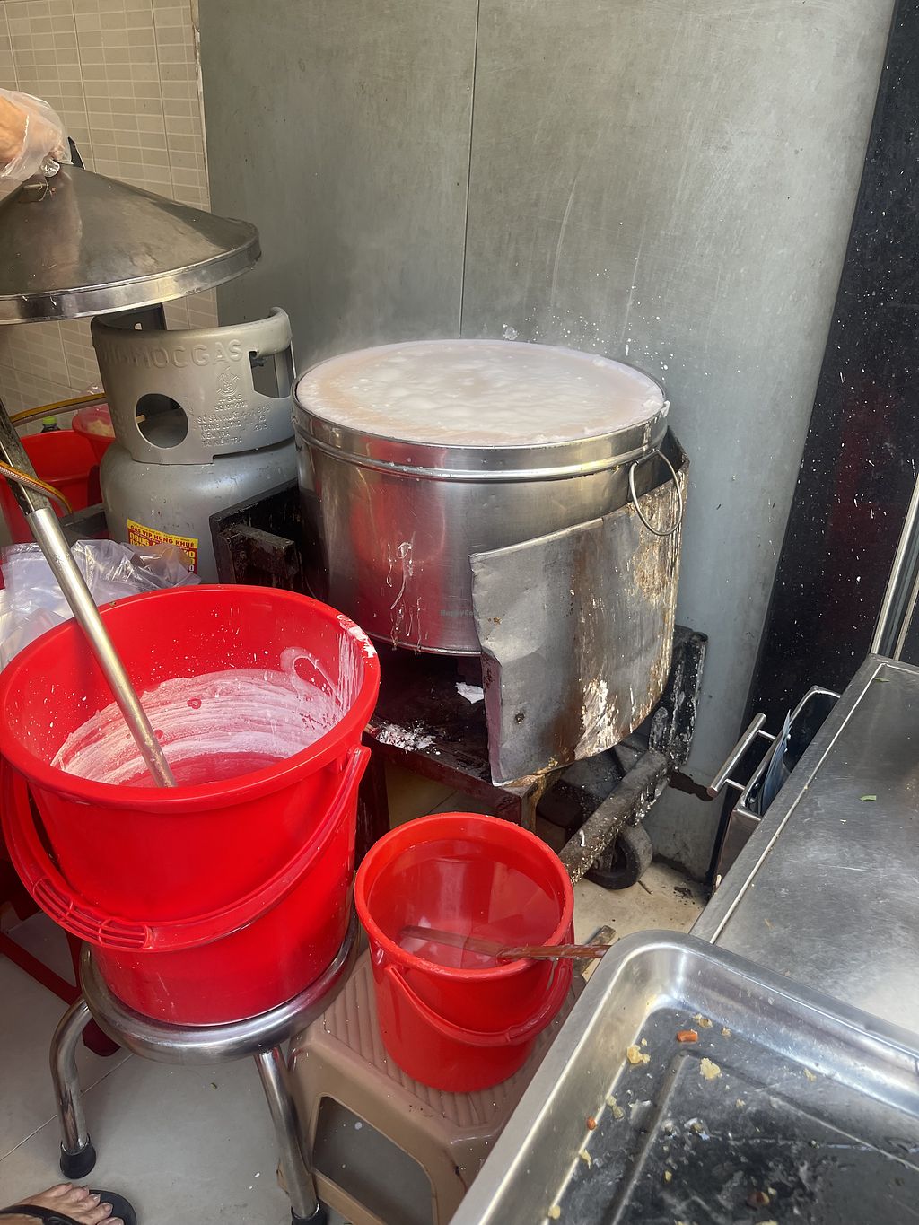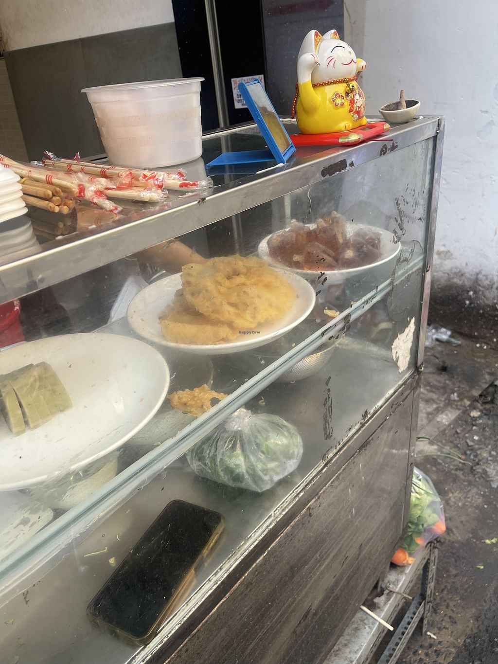 While it’s available in many restaurants it’s quite rare to find as street food. Tasty and ridiculously cheap. We left off the mock ham and green leaves on one portion as I’m becoming increasingly adverse to tofu and mock meats. No idea why but they genuinely make me sick.