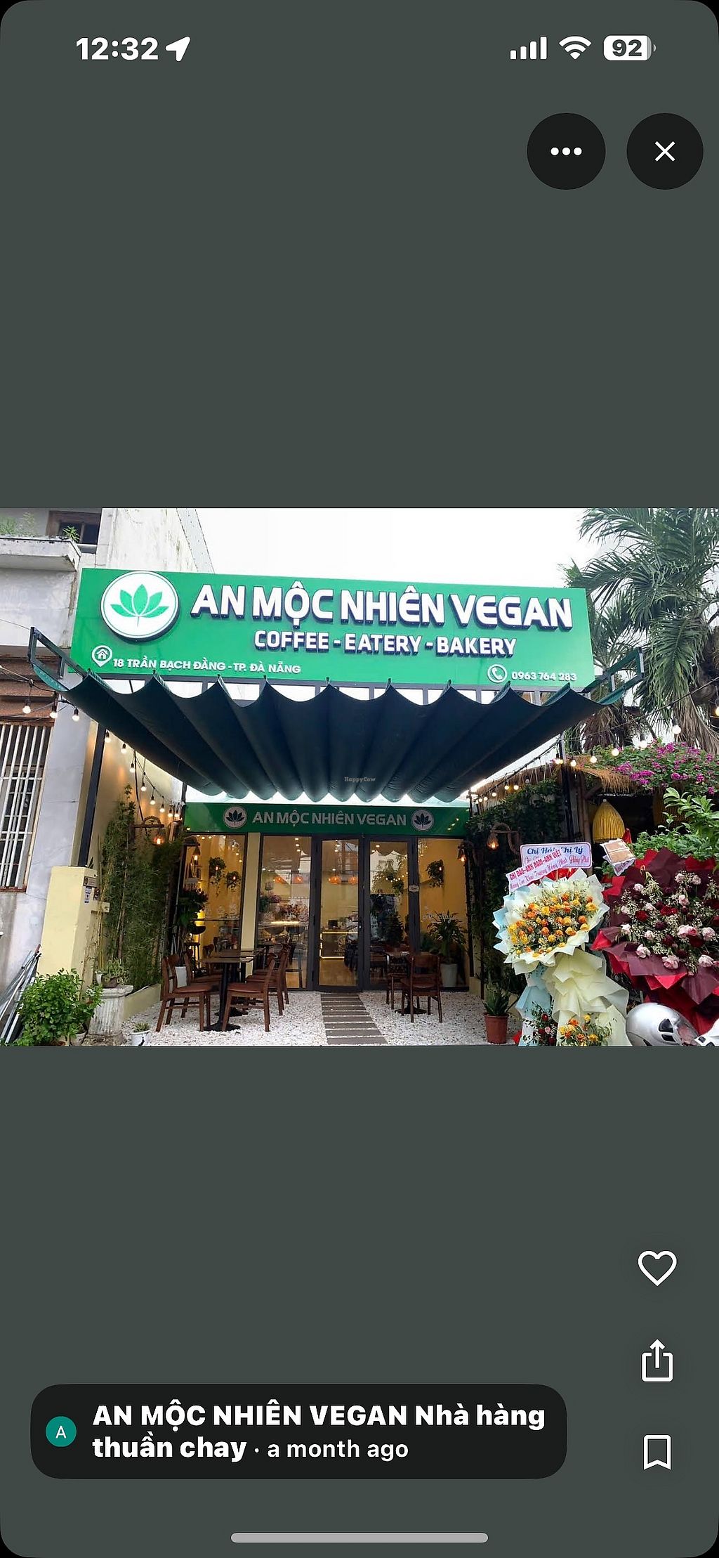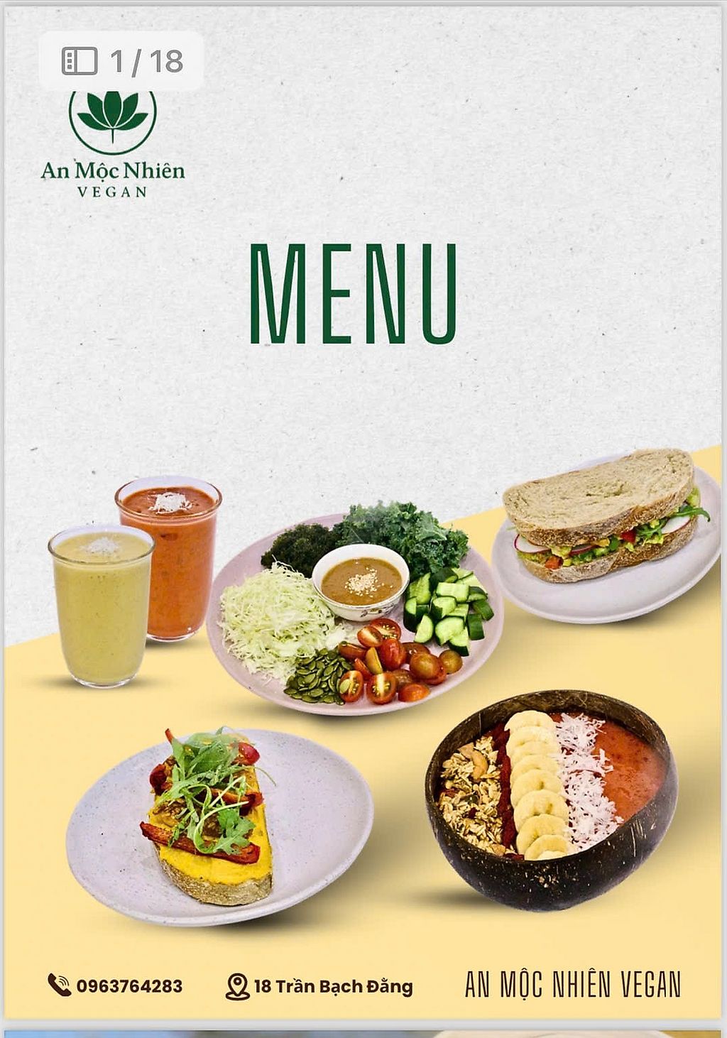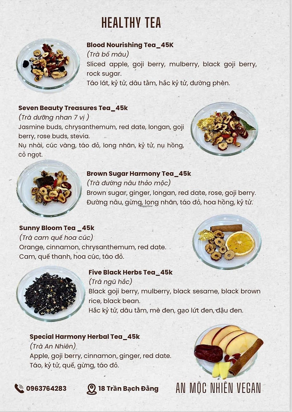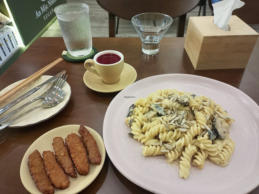 Vegetarian restaurant serving a mix of western and Vietnamese dishes. Vegan choices include breadfruit salad, crispy tempeh rolls with vegan fish sauce, vegetable spring rolls with peanut sauce, brown rice noodles with fried tofu, toasts, desserts and more. Ask staff about vegan options. Open Mon-Sun 7:00am-10:00pm.