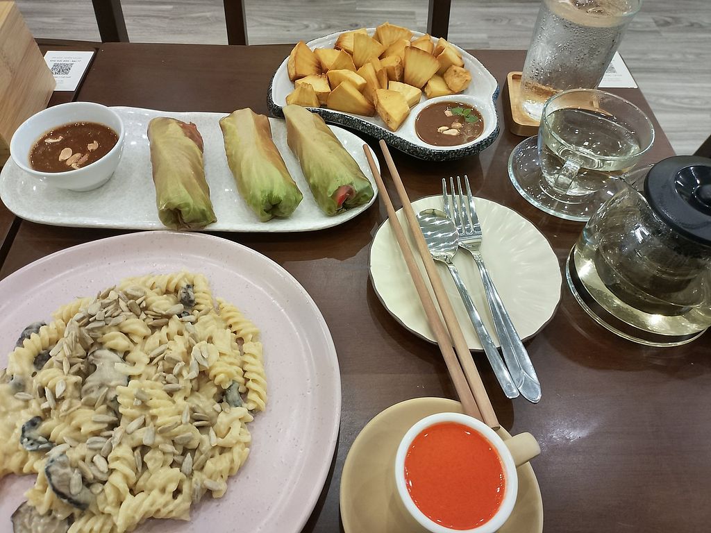Had some nice spring rolls and crispy tempeh rolls.