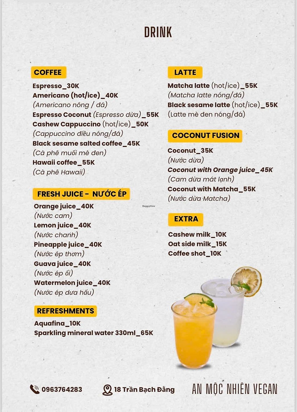 I've had most of the food and drinks. The quality is fresh, clean and 100% vegan.