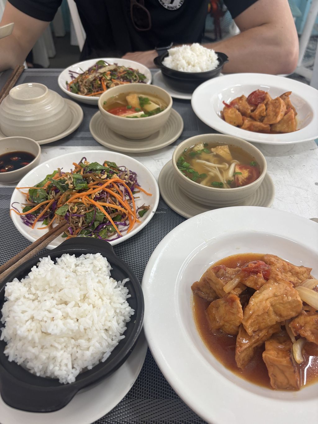 I got the fried tofu with tomato sauce and steamed rice and a green tea. Many places on this app seemed to be closed temporarily so I felt I had limited options and was just trusting previous reviewers . I asked the proprietor what is vegan she she said everything BTW. This was further reflected when she brought the receipt. I was wanting something a little more special but the food was decent, it came out super fast, I am still satisfied hours later. The green tea was better than normal/average for some reason. It hit the spot.