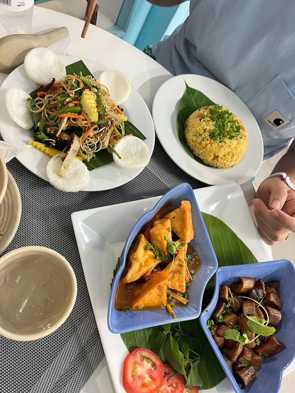 We ordered the set with tofu with tomato sauce and asked to swap the mixed salad for banana flower salad. All the food tasted good and came very quick, although the tofu was a bit cold.