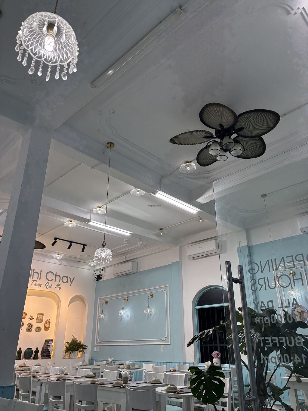 -Ambiance: The restaurant is decorated in White-Blue tones, with greenery and has smoothing background music.