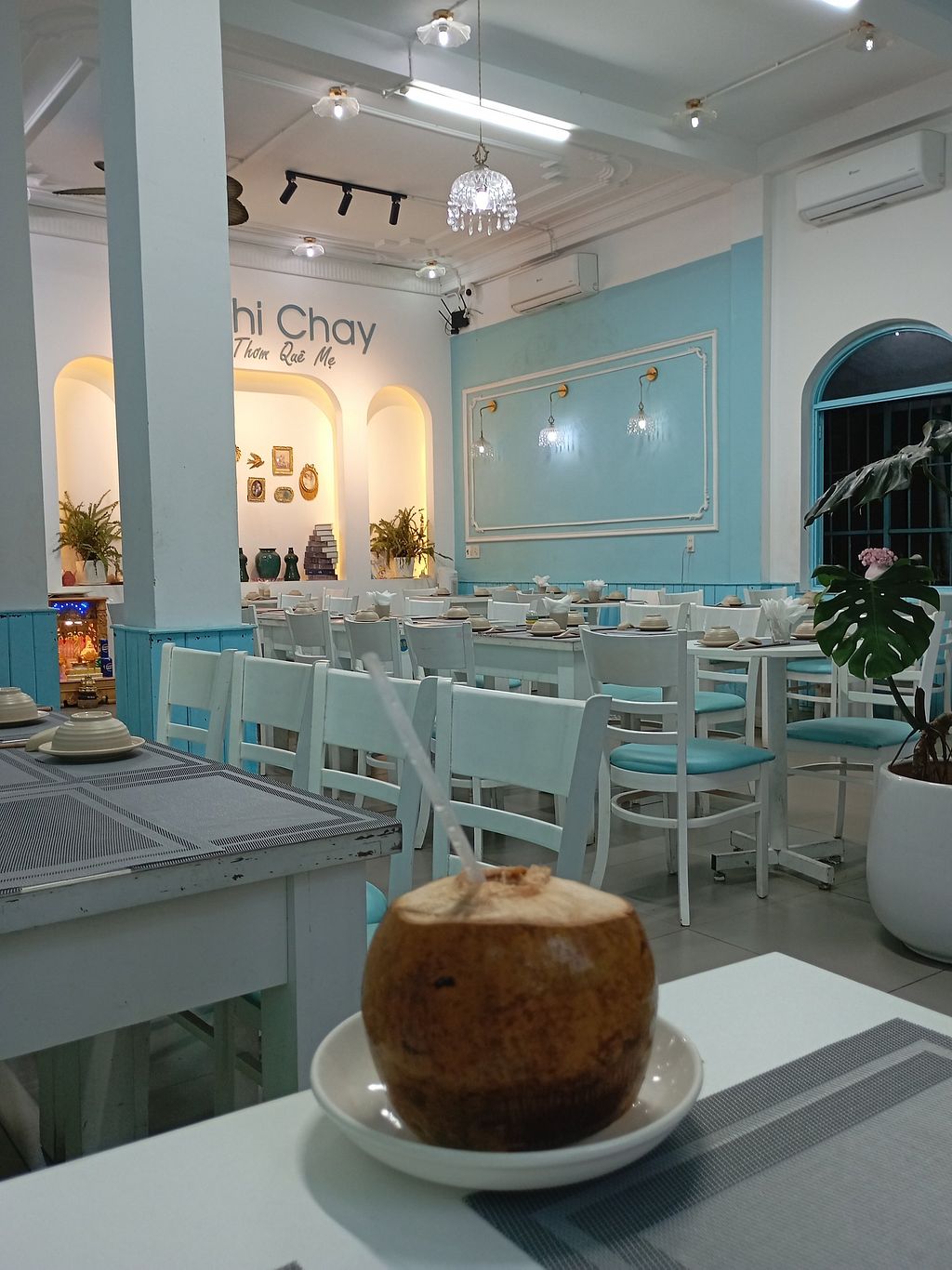 Had a late lunch at An Nhi Chay and ordered 3 meals and 2 drinks for 206 000. The banana flower salad was absolutely delicious and the other food was also excellent. The restaurant was also painted a cheerful blue and was very pleasant. The staff were friendly and helpful and brought us portable fans to help keep us cool. Would definitely recommend eating here for anyone visiting Hue.