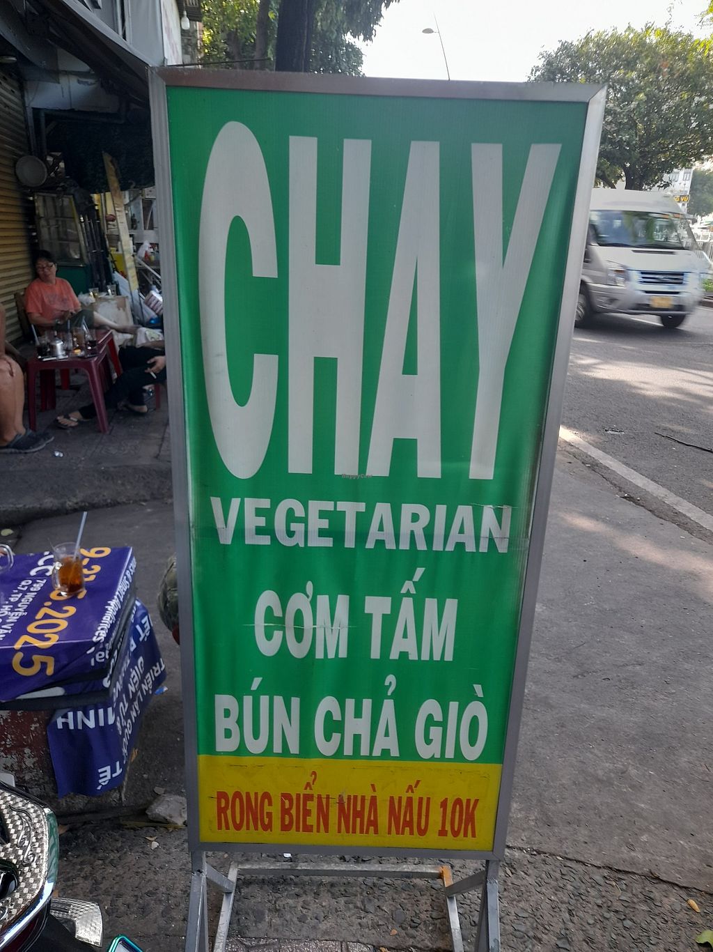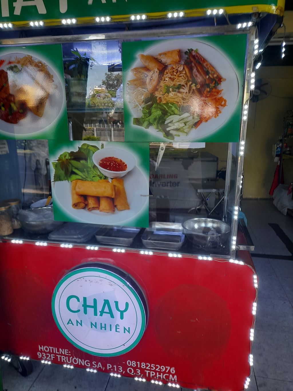 Chay An Nhien is a really cute little vegan eatery (every dish is vegan). She only sells 2 dishes. A vegan com tam and a fried roll with noodles, mint leaves, etc. Can't remember the name.